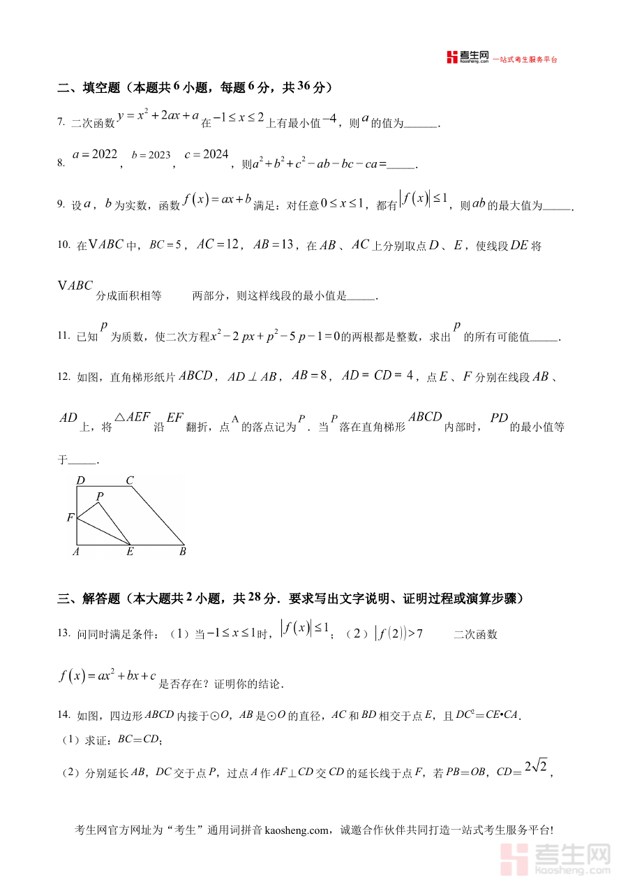 该资料适用于浙江省宁波市兴宁中学九年级上学期的学生及相关数学教师群体。对于学生而言,使用该原卷版进行练习或模拟测试,能有效提升对科技素养测试数学部分的适应度,助力制定更具针对性的备考策略;对于教师而言,它可作为阶段检测的参考样本,辅助优化教学计划与辅导重点,共同推动高效备考与教学效果的提升。