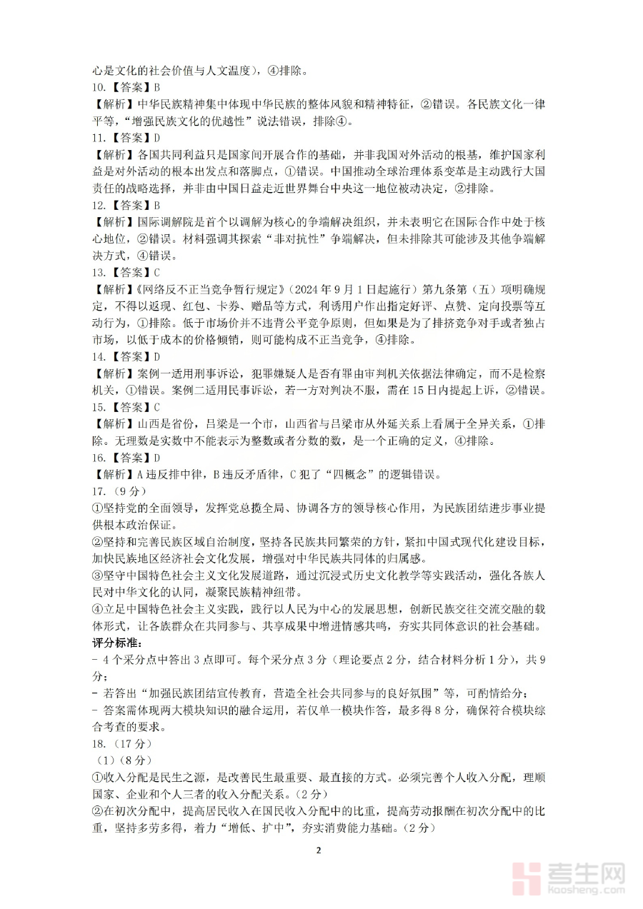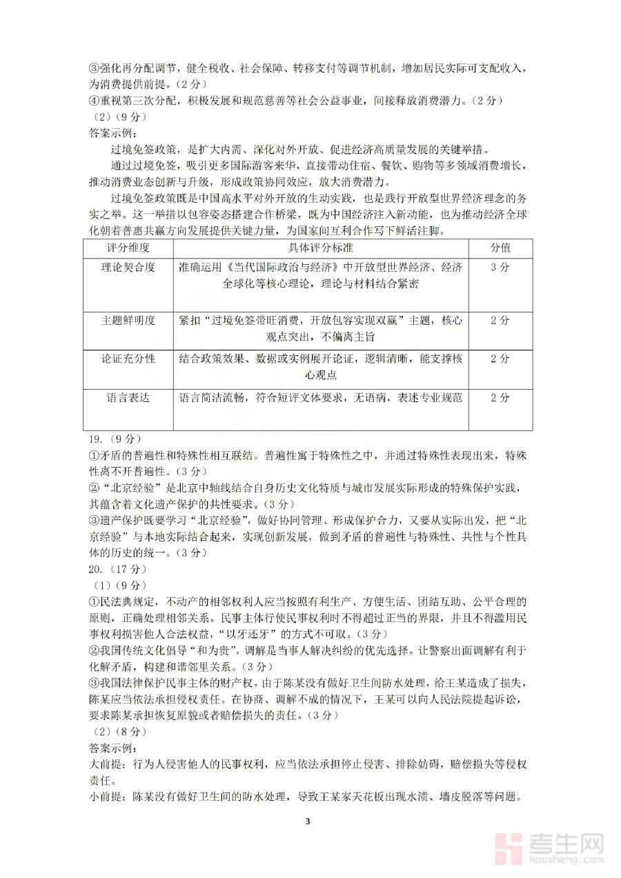 该资料的核心用途在于支持高三学生对政治科目测试作答情况进行精准核对与分析,帮助教师高效完成试卷批改并获取班级学情数据,同时为师生双方提供清晰的阶段学习反馈,助力后续备考规划的科学制定与优化,有效衔接下一阶段的复习任务,提升整体备考效率。