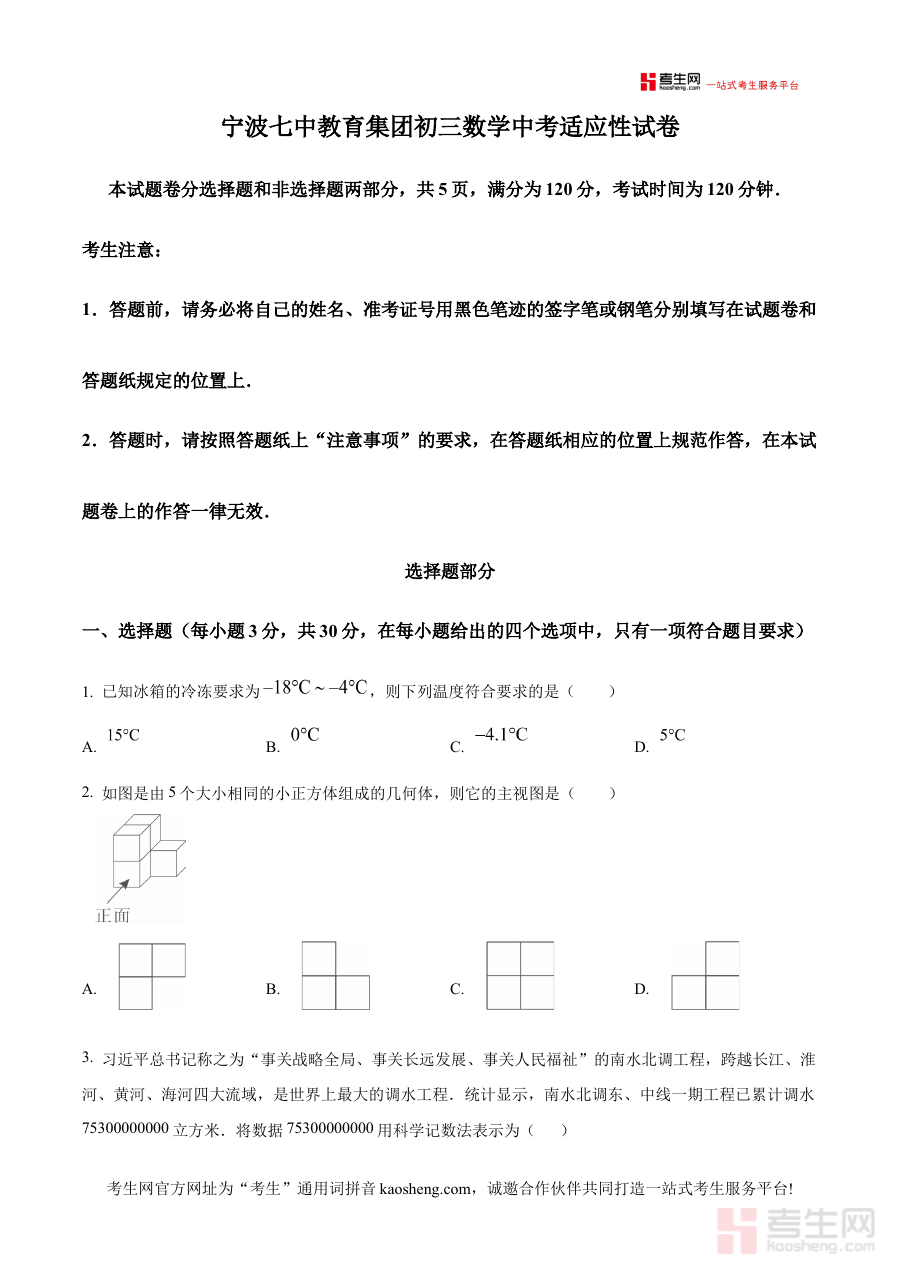 《精品解析:2025年浙江省宁波七中教育集团中考数学适应性试卷(原卷版)》是2025年面向浙江省宁波七中教育集团初三学生推出的中考数学备考资料,结合该教育集团的教学进度与中考命题趋势设计而成。作为中考前的重要练习载体,它旨在为学生搭建贴近真实中考场景的练习平台,帮助学生提前适应中考数学的考试形式与节奏,为后续系统复习提供基础参考。