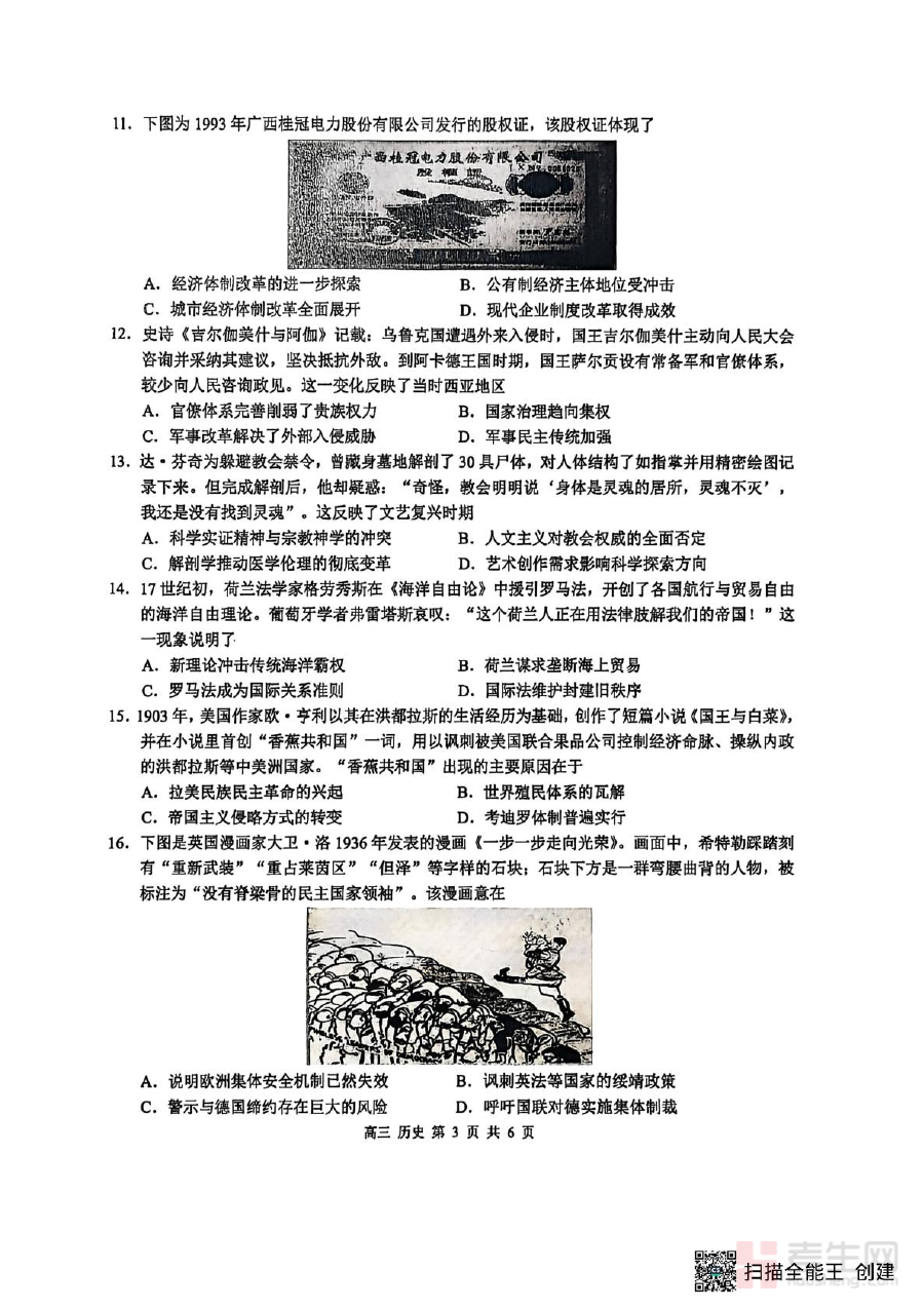 《河池市2025秋季学期高三历史期末学业水平检测试卷、参考答案 河池市2025秋季学期高三历史期末学业水平检测试卷》是河池市针对2025年秋季学期高三学生推出的历史学科期末学业水平检测相关资料,包含检测试卷及对应的参考答案两部分核心内容,属于高三阶段历史学科的阶段性学业评价与备考辅助资源,其设计与当地高三历史教学进度及学业水平要求相适配,能够为使用者提供符合区域教学实际的检测参考。