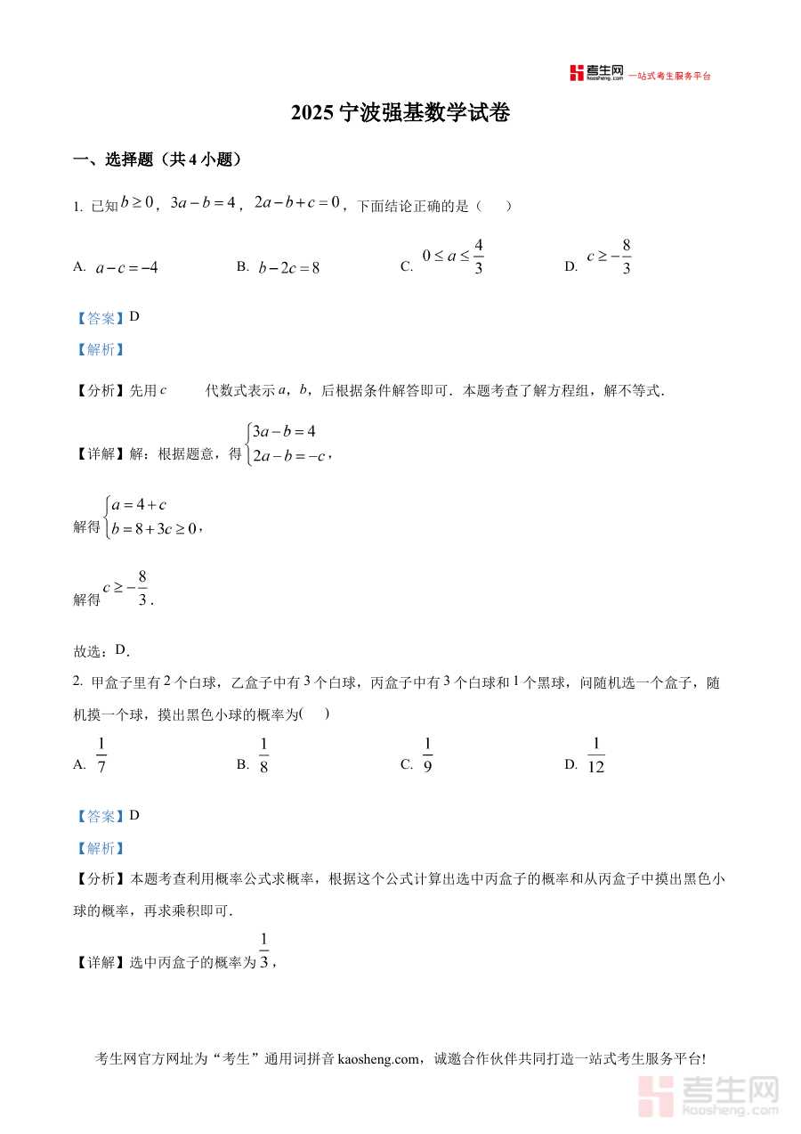 《精品解析:2025年浙江省宁波市九年级下学期强基计划数学测试试卷(解析版)》是面向2025年浙江省宁波市九年级下学期学生的强基计划数学专项备考资料,精准对接当地强基计划选拔的数学测试需求,整合了符合该阶段学生学习进度与强基计划考查方向的测试内容及配套解析资源,为使用者提供贴合本地选拔标准的备考支持。