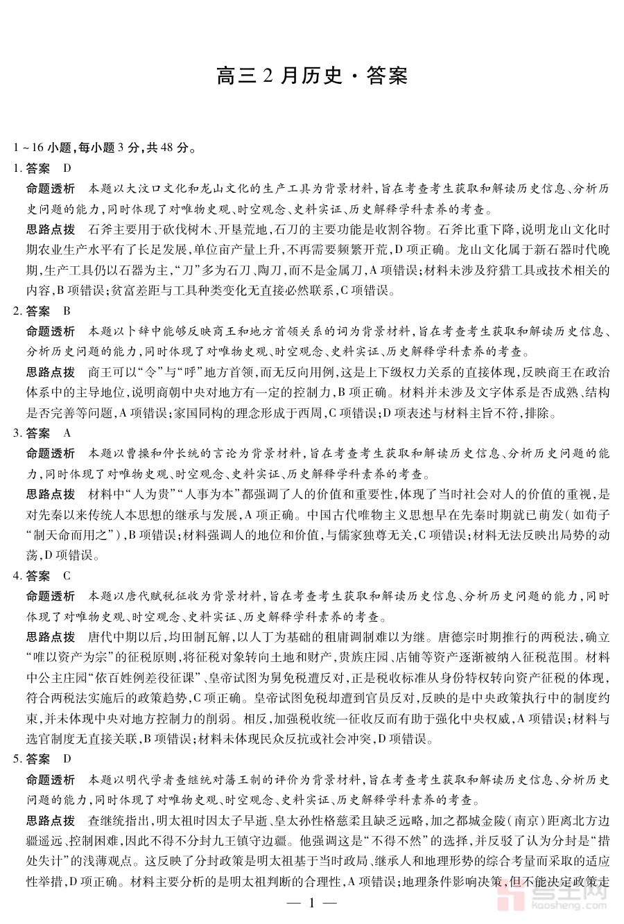 此答案资料适用于毫州市普通高中高三年级学生、历史学科教师及教研人员。学生通过核对答案能明确自身历史知识薄弱环节;教师借助该资料可进行学情诊断与教学反思,提升教学的针对性与备考规划的科学性,助力高三历史教学质量提升。