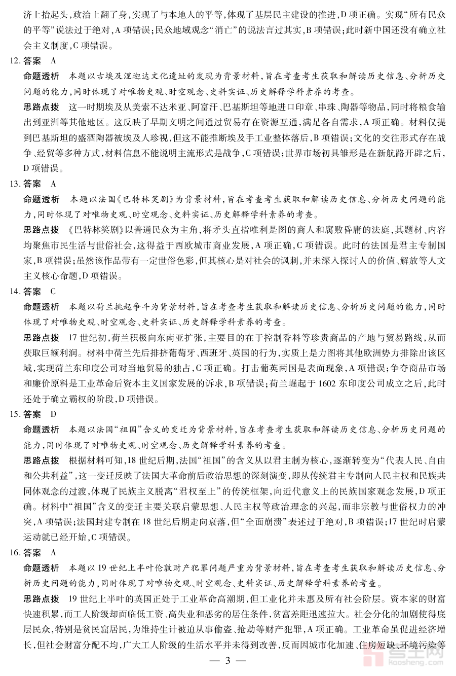 该资料可用于高三学生核对期末历史检测的答题结果,帮助师生掌握阶段学习的知识掌握情况与答题表现,为后续教学内容调整、备考策略优化提供数据支撑,同时也是学生开展自我学习评估的有效参考工具。