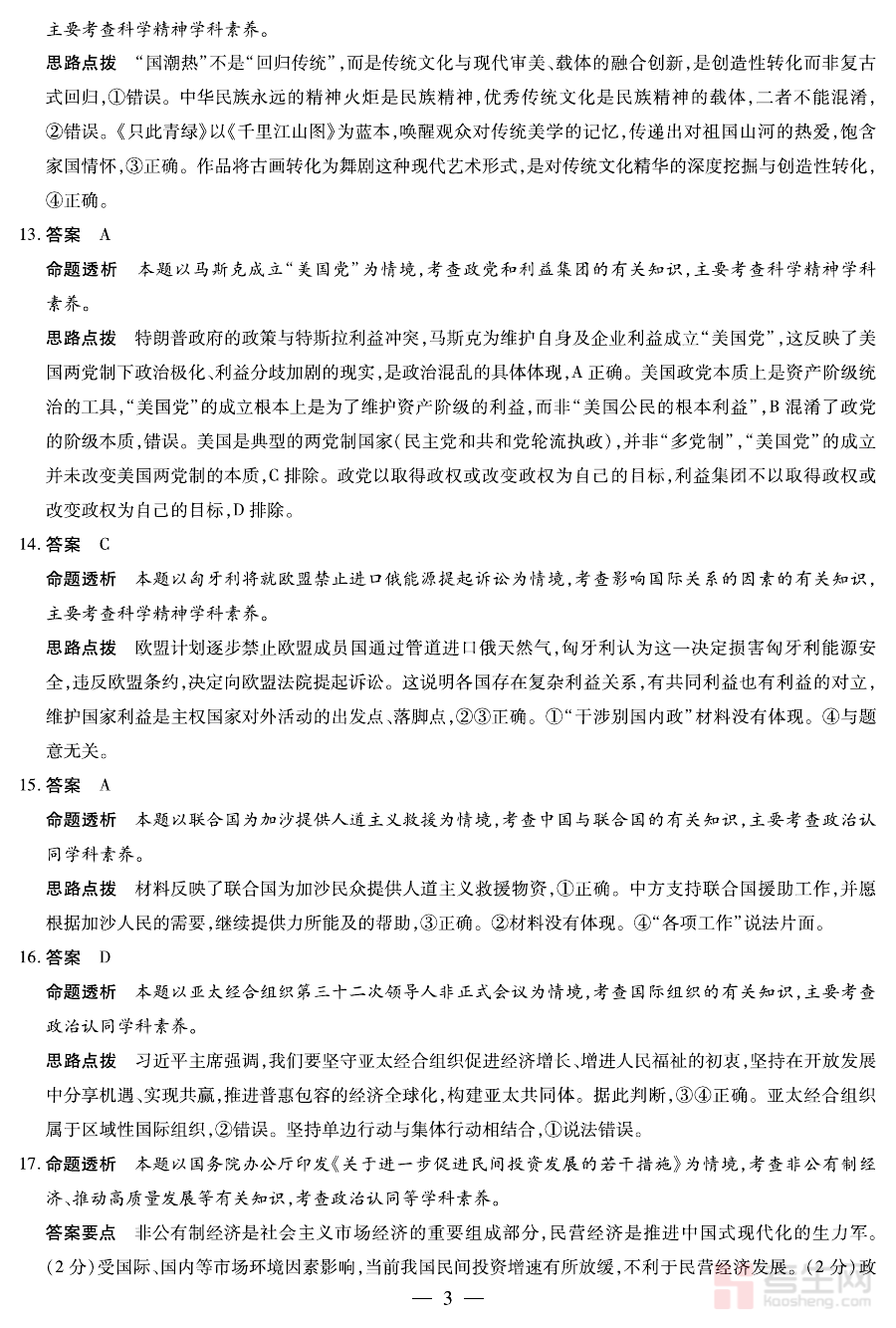 这份答案资料的核心用途在于辅助教学与备考工作。对于教师而言,它能够帮助快速完成试卷批改与学情分析,精准定位学生在政治学科各知识模块中的薄弱环节,从而优化后续的教学计划与辅导策略;对于学生来说,通过对照答案进行自我批改与反思,可清晰了解自身学习中的不足,及时弥补知识漏洞,提升学习效率。