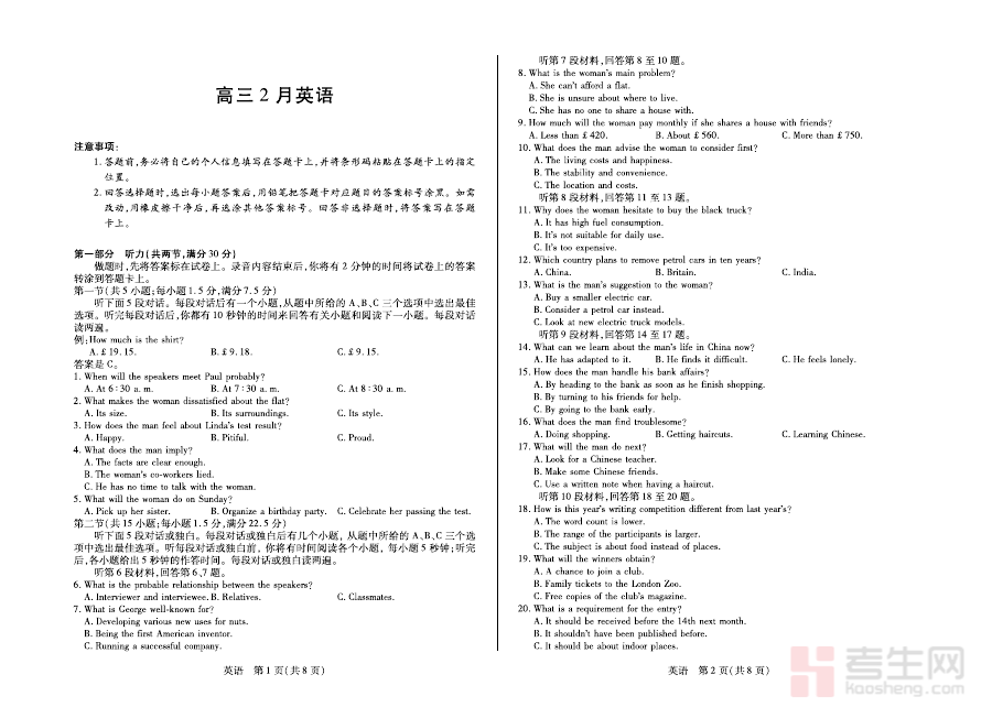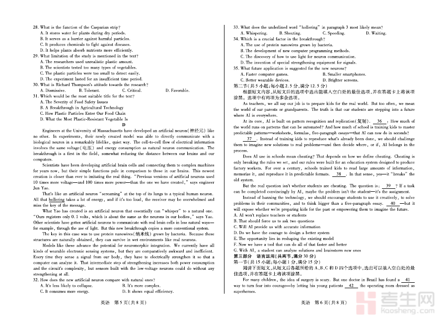 这份资料可作为高三学生进行自我学情诊断的工具,帮助学生清晰识别自身在英语学习中的优势领域与薄弱环节;同时也能为教师提供班级整体学习状况的数据参考,助力教师制定更具针对性的备考规划与教学策略,有效提升教学与复习的效率。此外,作为阶段检测资料,它能客观检验该学期英语教学目标的达成情况,确保教学方向与学生需求的匹配,为后续教学调整提供支撑。
