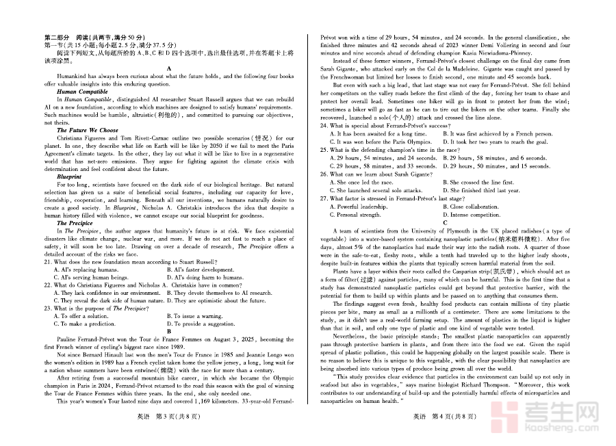 该资料适用于亳州市普通高中高三年级的学生、英语学科教师以及区域内的教育教研工作者。对于学生而言,借助这份资料可提前熟悉期末检测的形式与要求,明确后续复习重点;对于教师来说,能通过资料分析学生的学习动态,优化教学内容与方法;对于教研工作者,可通过该检测的结果了解区域内高三英语教学的整体态势,为区域教育质量提升提供决策支持,推动高三英语教学的精准化与高效化。