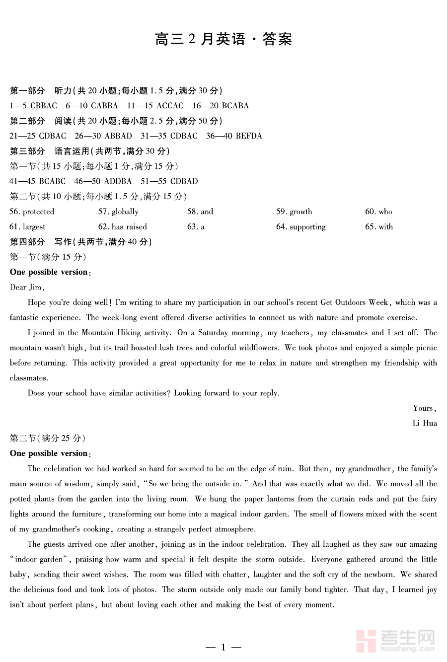 这份答案资料可用于帮助教师和学生对高三期末英语检测的答题情况进行精准分析,辅助教师完成学情诊断,明确学生在英语学习中的优势与薄弱环节,同时为后续的备考规划提供数据支撑和方向指引,助力教学与学习的针对性调整。