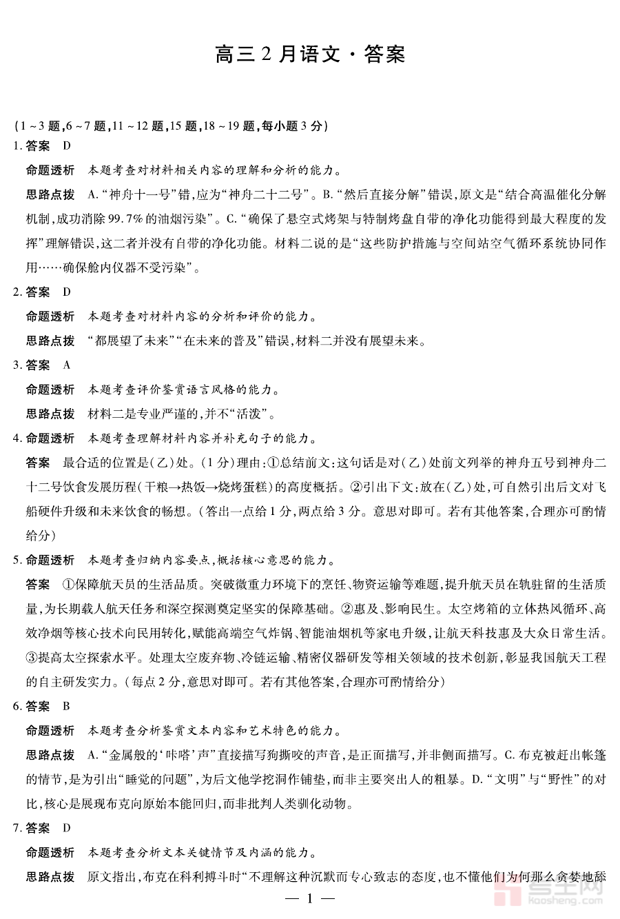 该资料明确适用于毫州市普通高中高三年级的学生语文教师及教学管理人员对于学生而言通过对照答案可及时发现自身学习中的漏洞与薄弱环节从而优化复习计划提升备考效率对于教师而言能借助答案开展针对性的教学反馈与指导提升课堂教学的有效性对于教学管理者而言可基于答案反映的整体检测情况调整教学安排强化阶段检测对备考规划的指导价值助力高三学生更高效地备战后续的升学考试