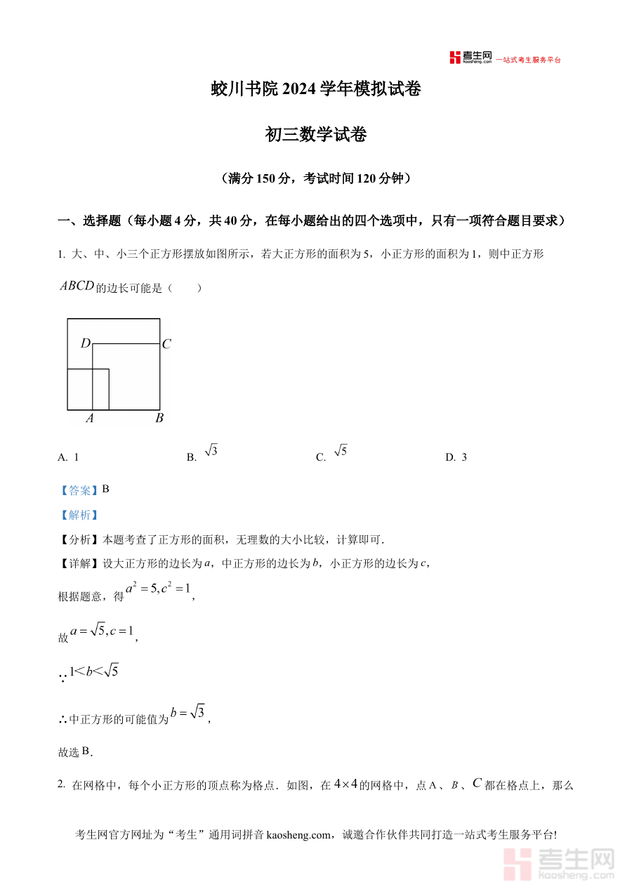 《精品解析:2025年浙江省宁波市镇海蛟川书院中考数学一模试卷(解析版)》是针对2025年浙江省宁波市镇海蛟川书院初三学生的中考数学一模考试打造的专业备考资料,精准对应该校特定阶段的数学测试需求,结合中考数学的整体命题趋势与书院自身的教学实际,为考生提供与本校一模考试紧密相关的解析支持。作为中考前重要的阶段性评估工具相关资料,它能够帮助考生提前适应本校一模考试的考查形式与要求,为后续的系统复习与能力提升搭建基础框架。