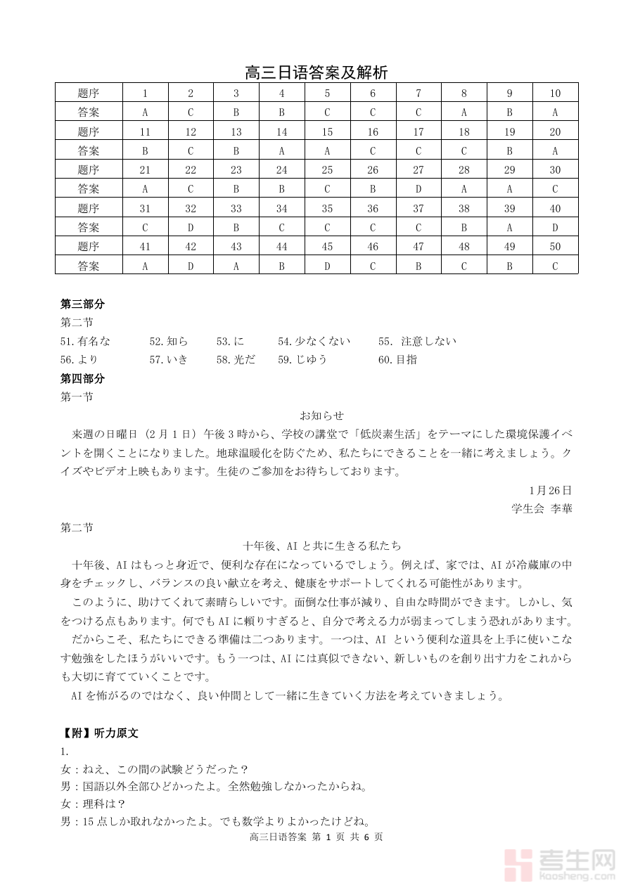 《安徽省鼎尖联考2025-2026学年高三上学期期末过程性学科素质评价 日语答案》是针对安徽省鼎尖联考在2025-2026学年高三上学期期末开展的过程性学科素质评价的日语科目配套答案资料,属于该阶段考试的重要备考辅助资源。