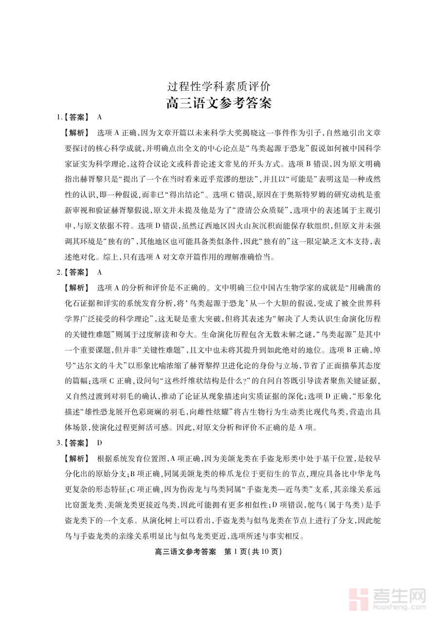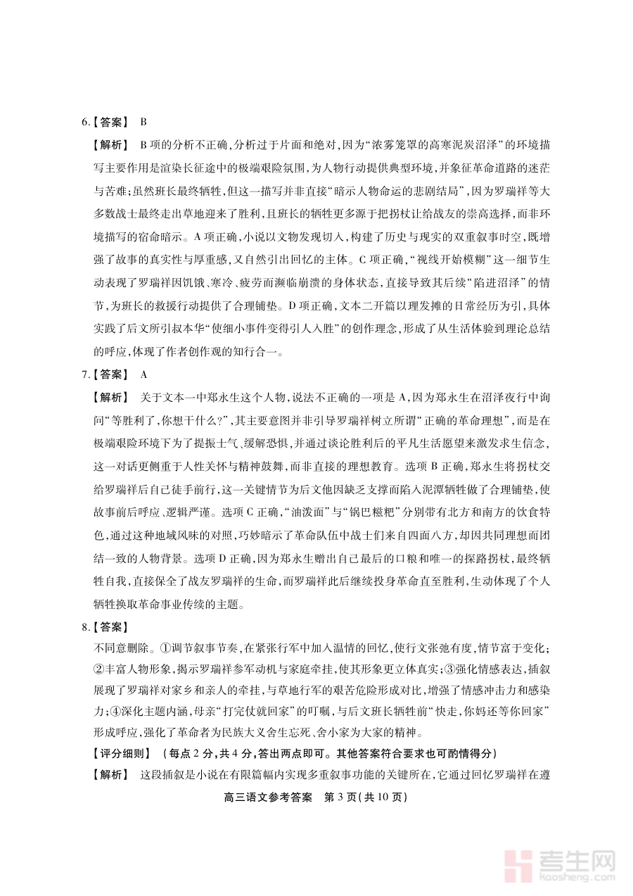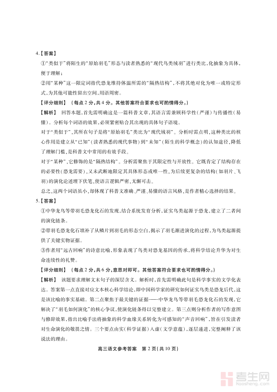 这份答案资料可用于高三学生对自身语文学习情况进行针对性诊断,通过比对答案与自身作答的差异明确知识掌握薄弱环节;同时为教师提供教学反馈依据,助力调整后续教学策略与备考规划,确保教学内容与考试要求更贴合;此外作为过程性评价配套资料,辅助师生了解阶段检测评价重点,提升备考精准性与有效性。