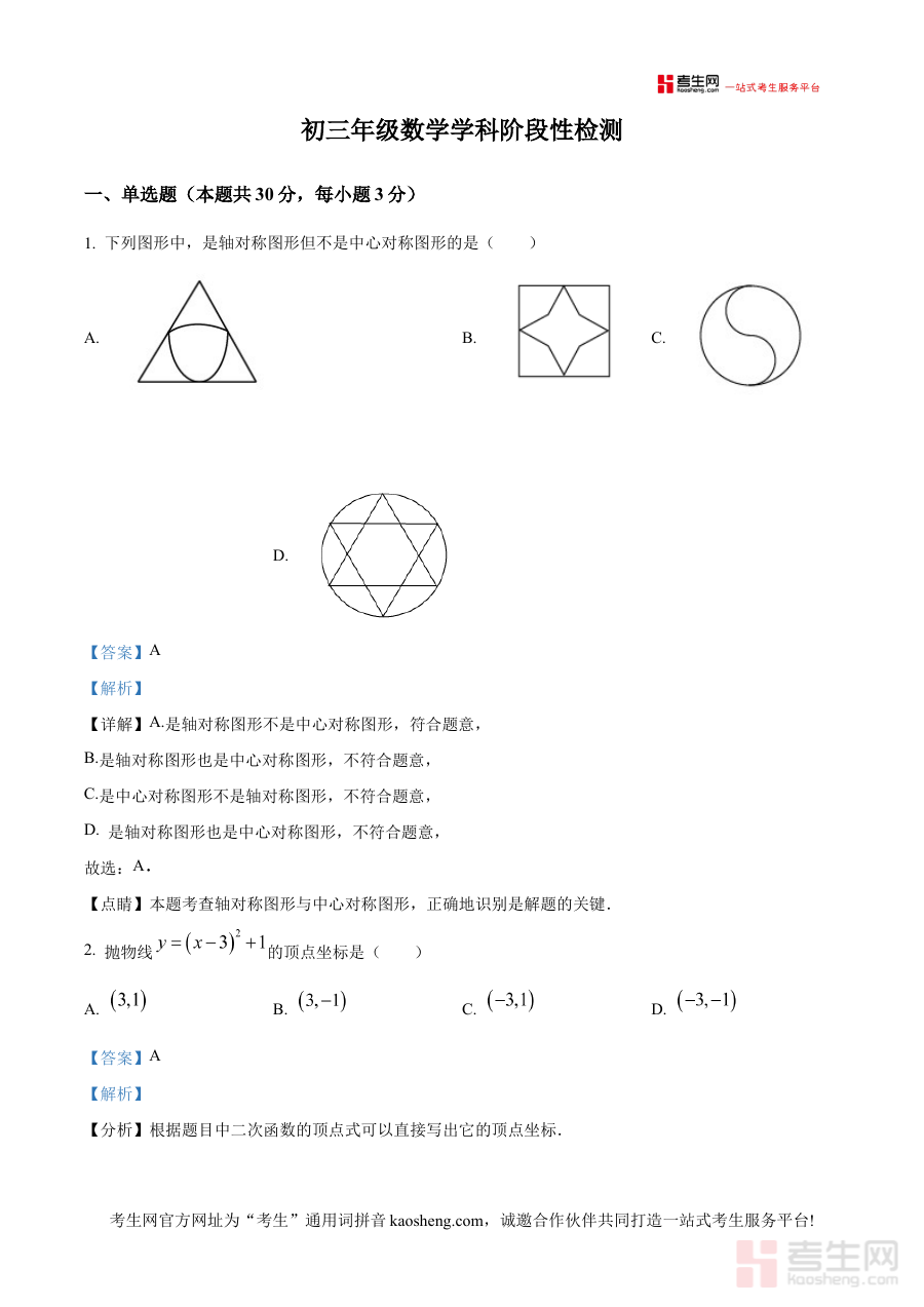 《精品解析:北京市汇文中学2024~2025学年上学期九年级月考数学试卷(10月份)(解析版)》是北京市汇文中学在2024至2025学年上学期针对九年级学生开展的10月份数学月考配套解析资料,聚焦该阶段数学学科的阶段性学习成果检测需求,为学生提供专业的试题解析支持。