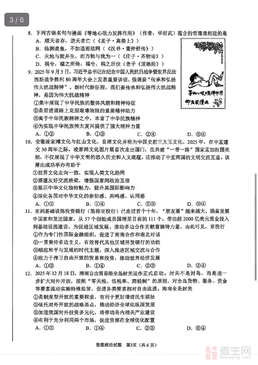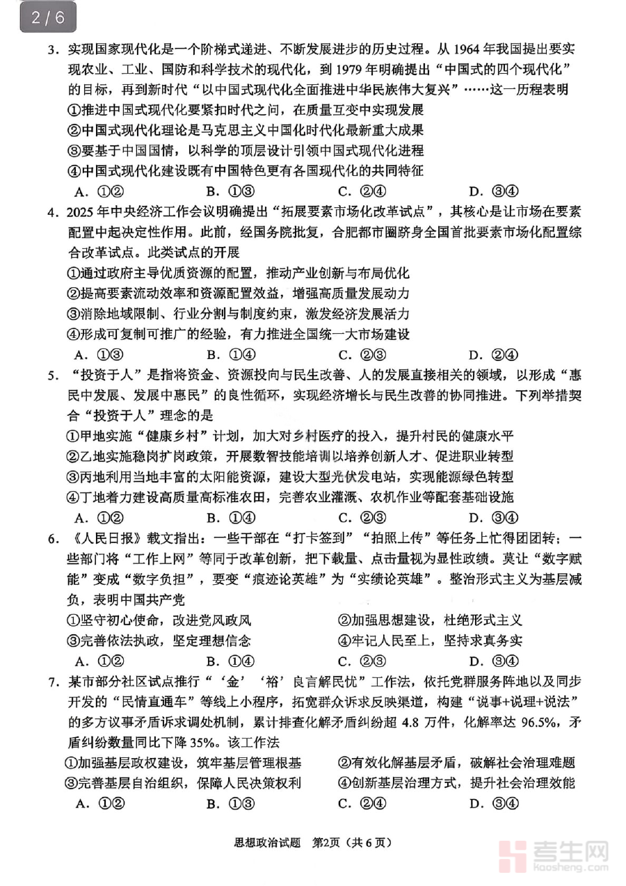 此资料适用于安徽省合肥市2026届高三学生、政治学科教师及相关教育工作者;对学生而言,能帮助其熟悉阶段检测形式与考查方向,为后续备考积累经验;对教师而言,可借助其优化教学策略提升针对性;对教育工作者而言,可了解区域内高三政治教学的阶段性现状与要求。