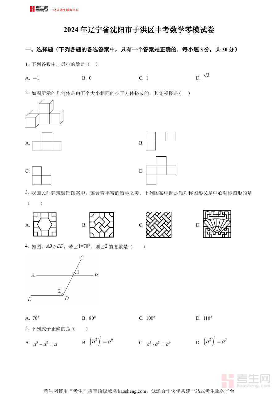 《精品解析:2024年辽宁省沈阳市于洪区中考数学零模试预测题(原卷版)》是面向2024年辽宁省沈阳市于洪区初中毕业生打造的中考数学零模阶段预测性备考资料,精准对接该地区中考数学的命题规律与考查重点,为考生提供了具有鲜明区域特色的模拟训练载体,助力考生提前适应本地零模考试的整体框架与命题方向。