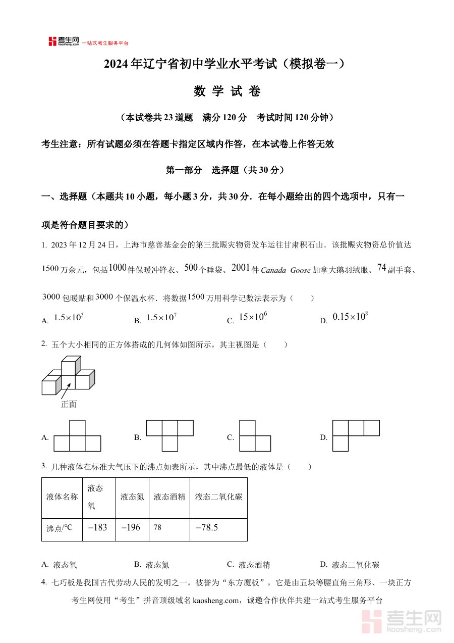 本资料主要适用于辽宁省沈阳市初三阶段的数学教师及即将参加2024年初中学业水平考试的学生。对于学生而言,通过使用该模拟试卷进行阶段检测,能及时发现学习漏洞并针对性补强;对于教师来说,它可作为课堂教学与复习规划的参考素材,助力提升备考指导的精准性与有效性。整体而言,该资料在考生的备考进程中具有重要的规划与检测价值,有助于考生更高效地准备学业水平考试。