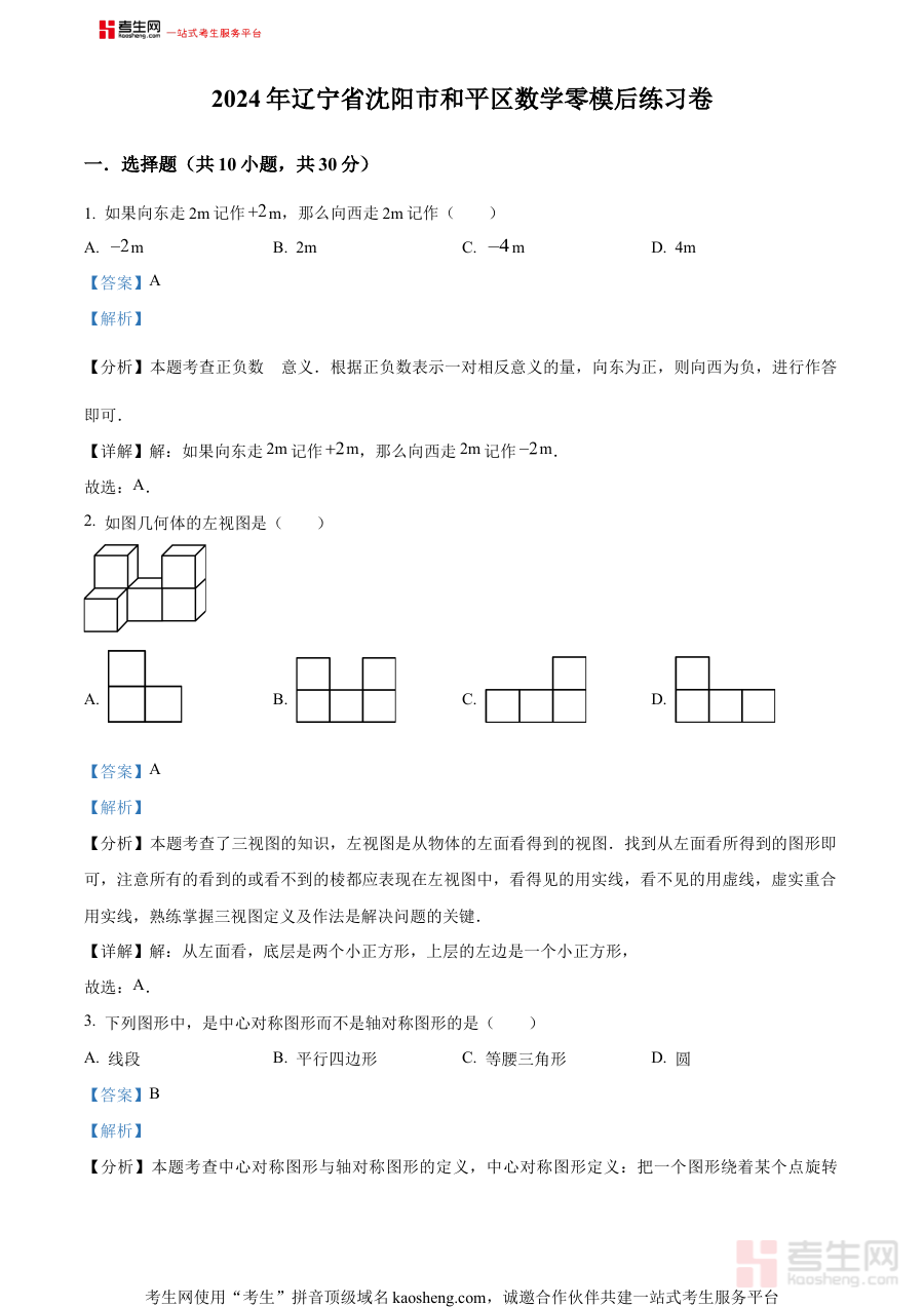 《精品解析:2024年辽宁省沈阳市和平区数学零模后模拟预测题(解析版)》是面向2024年辽宁省沈阳市和平区数学学科考生的专项备考资料,聚焦零模考试之后的复习阶段,结合该区域数学考试的命题趋势与零模后的学习需求编制而成,旨在为考生提供具有针对性的模拟练习与解析支持。