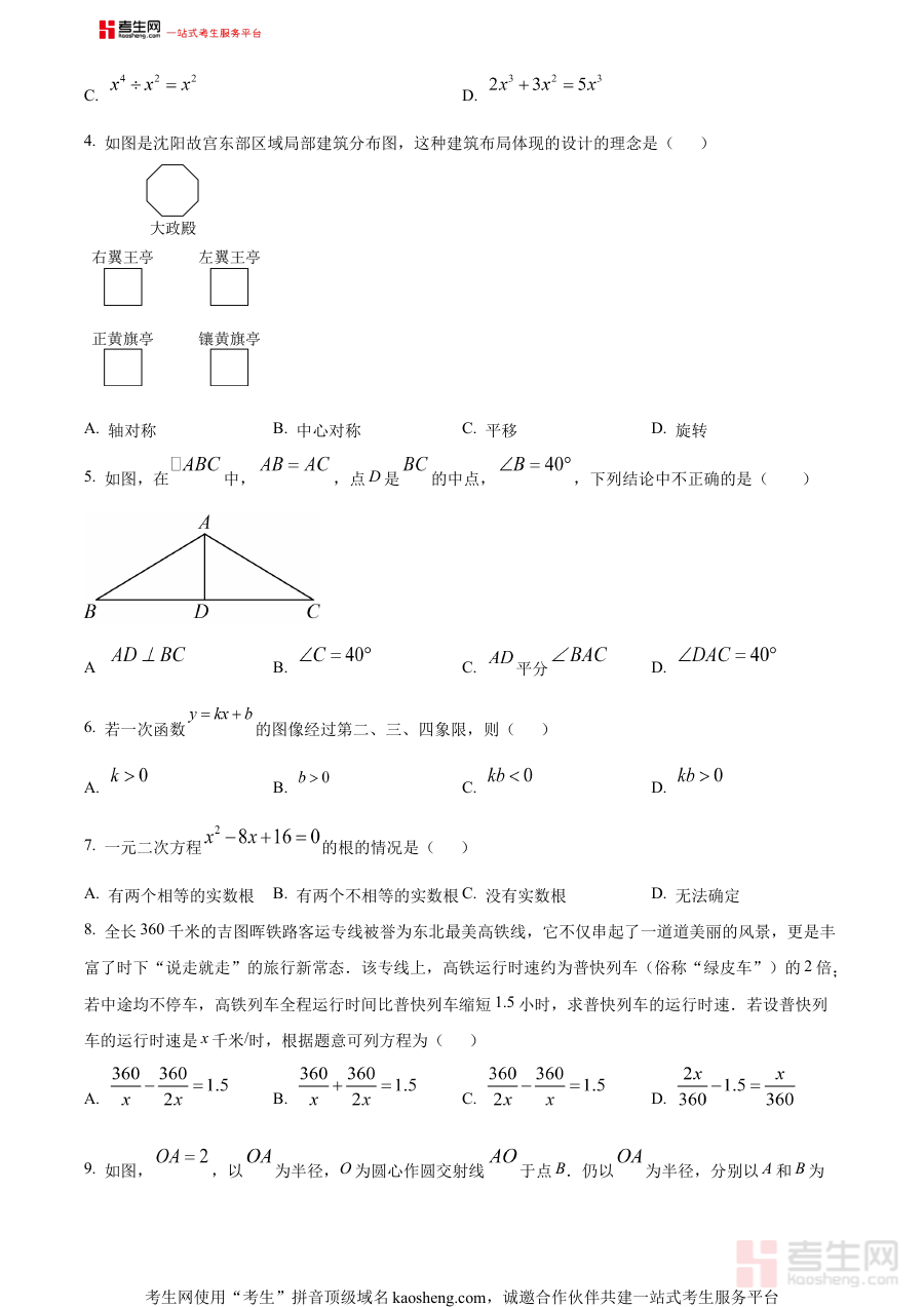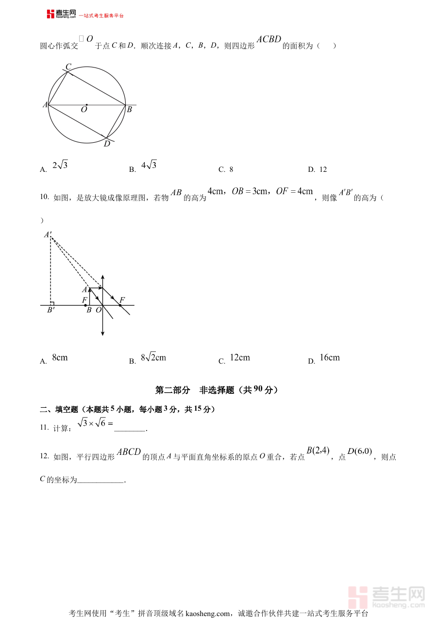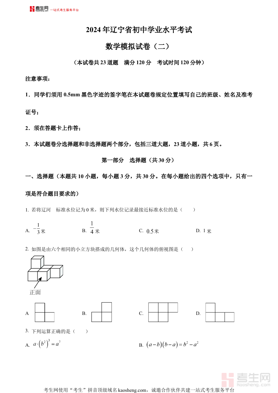 本资料适用于2024年参加中考的沈阳市私立联合体学校的数学考生,以及负责该群体中考数学教学的教师;通过使用该原卷版资料,考生可提前熟悉中考模拟考试的形式与节奏,教师可借助其开展针对性的阶段检测与备考指导,提升备考效率与质量。