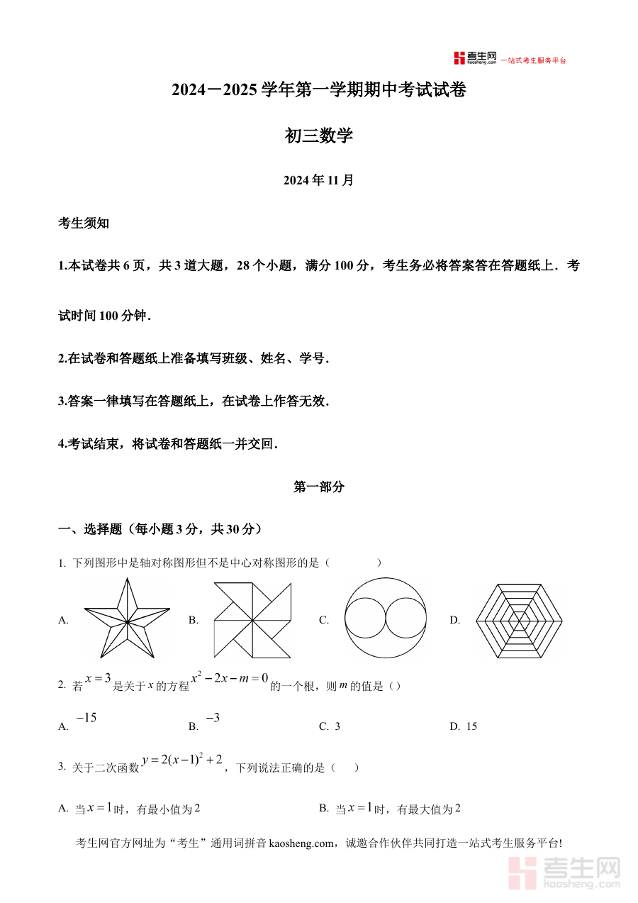 此资料主要适用于北京市第五十四中学2024-2025学年九年级的在读学生,以及负责该年级数学教学的教师和关注学生学习进度的家长。对于学生,使用该原卷进行模拟练习可提前适应考试形式与节奏,增强应试信心;对于教师和家长,它是了解学生学习状态、优化备考策略的有效参考,能助力实现阶段检测与备考规划的有机结合,促进学生数学学习效果的稳步提升。