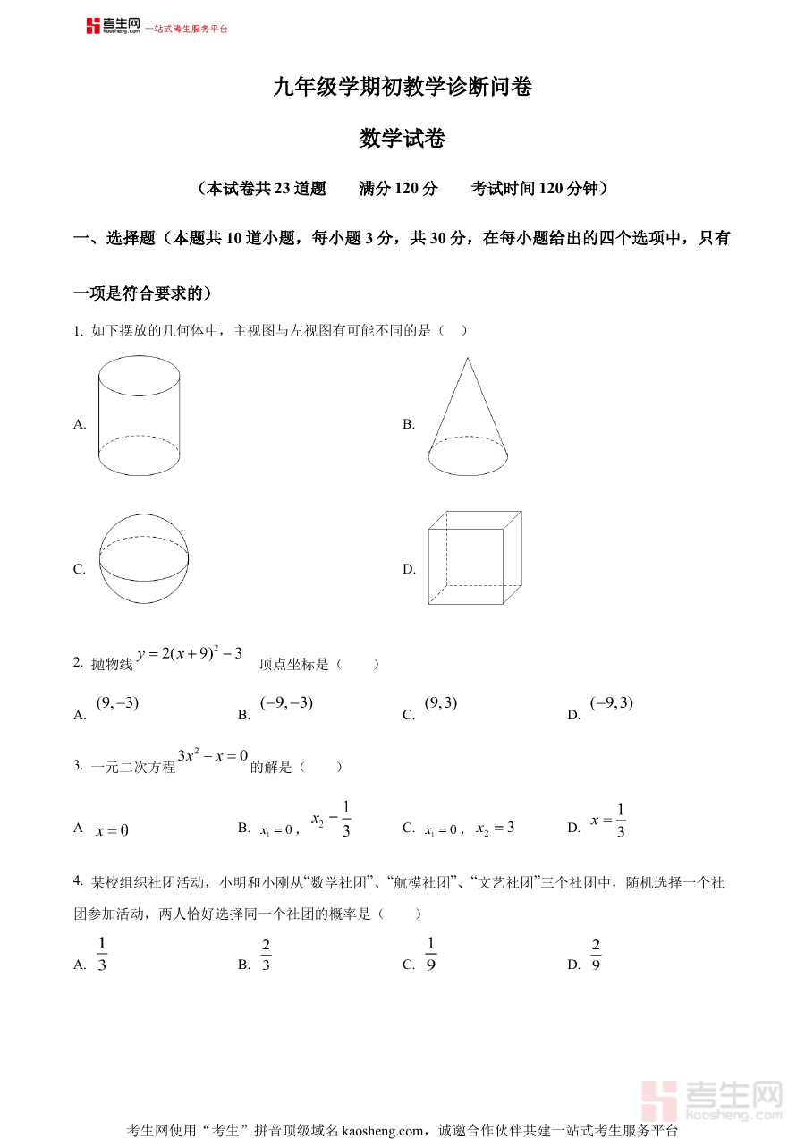 本资料适用于辽宁省沈阳市苏家屯区2024届初中毕业生及相关数学教师,对于考生而言,零模阶段的检测是中考备考的关键起点,该资料能帮助他们提前适应考试节奏,积累应试经验,为后续的一模、二模及最终中考打下坚实基础;对于教师来说,借助该资料可更高效地开展阶段性教学评估,辅助学生进行科学的备考规划,提升整体复习效率与质量。