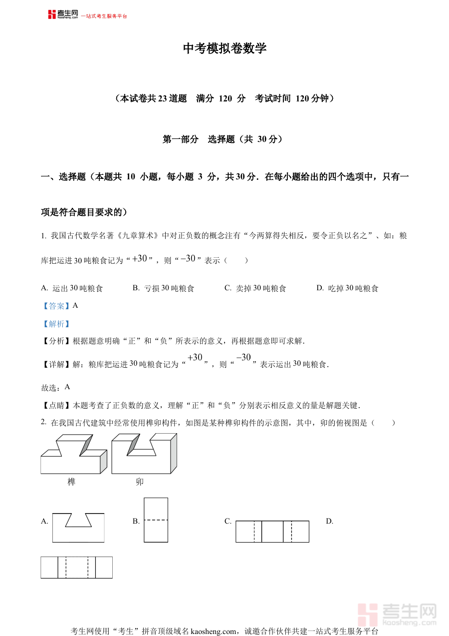 该资料作为中考一模阶段的重要参考资源,可用于考生的学情诊断与阶段检测,帮助考生清晰认知自身在数学学习中的优势与不足,为后续针对性复习与备考规划提供科学依据;同时通过解析版的详细内容,考生能够深入理解解题思路与方法逻辑,提升对数学知识的综合应用能力与应试技巧,助力考生在模拟训练中积累实战经验。