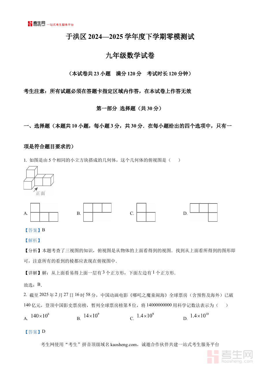 《精品解析:2025年辽宁省沈阳市于洪区模拟预测数学试题(解析版)》是面向2025年辽宁省沈阳市于洪区数学学科的模拟预测类备考资料,其内容设计紧密结合当地教学进度与考试命题趋势,以解析版为核心形式,旨在为使用者提供全面且专业的解题思路梳理与方法指导,帮助其深入理解试题所承载的知识逻辑及实际应用场景。