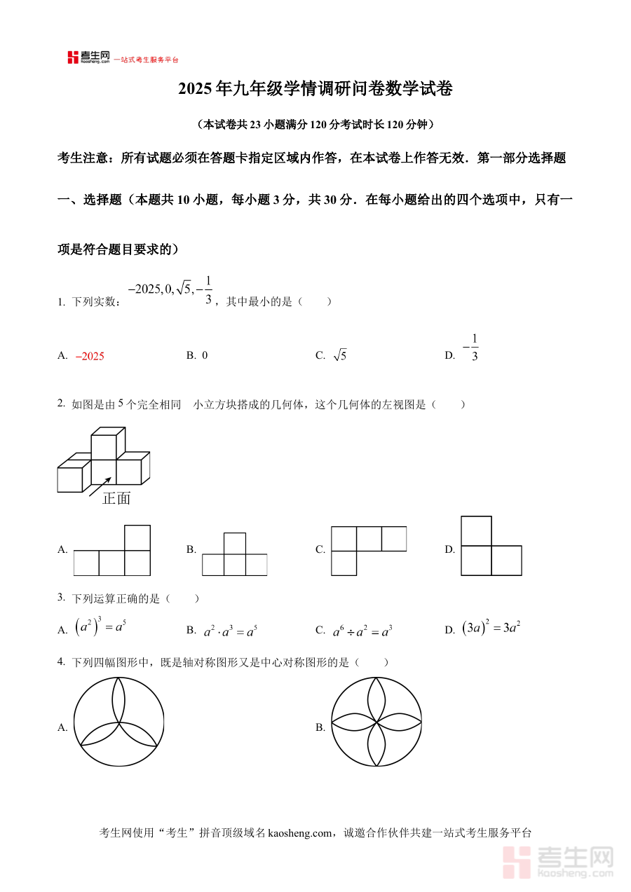 本资料主要适用于2025届辽宁省沈阳市和平区九年级在读学生,尤其适合需要提前熟悉中考零模考试形式、进行阶段性知识巩固与能力评估的学生群体。它的核心价值在于能够让学生在中考备考初期通过真实还原的原卷形式进行规范的阶段检测,清晰明确自身学习短板与优势模块,进而更有针对性地优化后续的数学复习计划与策略,有效提升备考过程中的效率与实际效果。