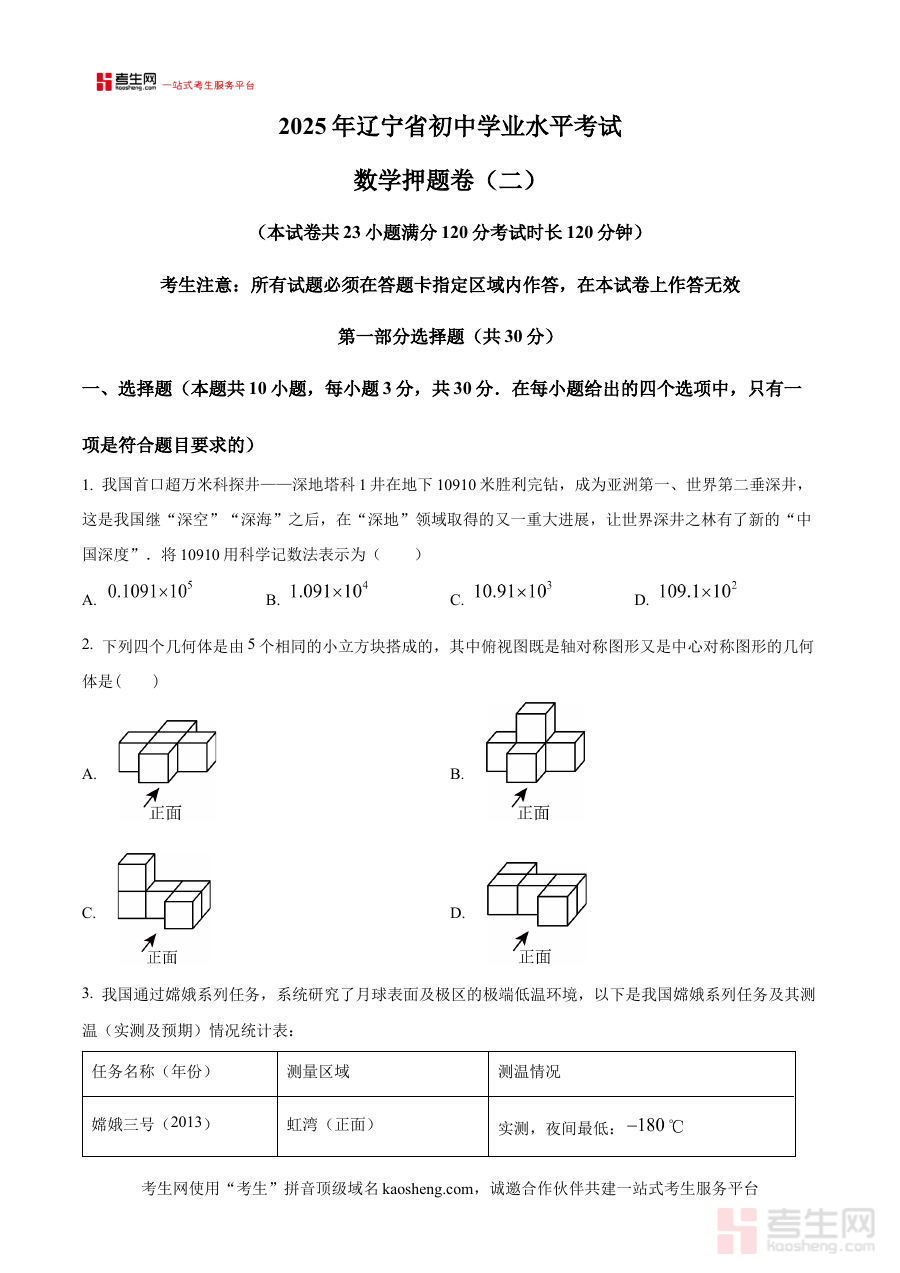 《精品解析:2025年辽宁省沈阳市尚品学校中考模拟考试(二模)数学试卷(原卷版)》是2025年面向辽宁省沈阳市尚品学校初三学生推出的中考数学二模模拟考试原卷类备考资料。作为中考前重要的阶段性模拟测试载体,该资料紧密贴合沈阳本地中考数学的考查方向与学情特点,能够为考生提供贴近真实考试环境的练习机会,帮助考生提前适应中考数学的考试流程与要求,是中考备考过程中不可或缺的阶段性资源。