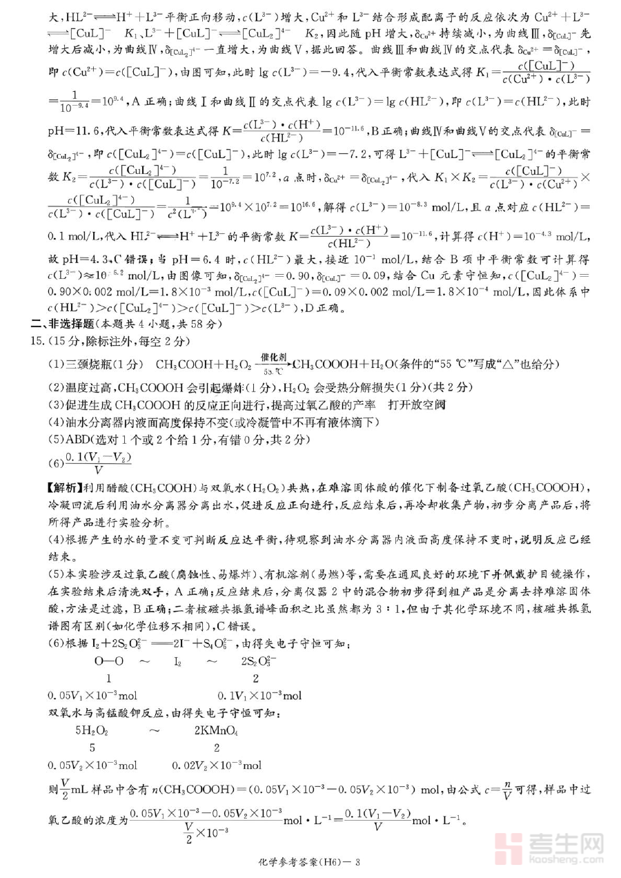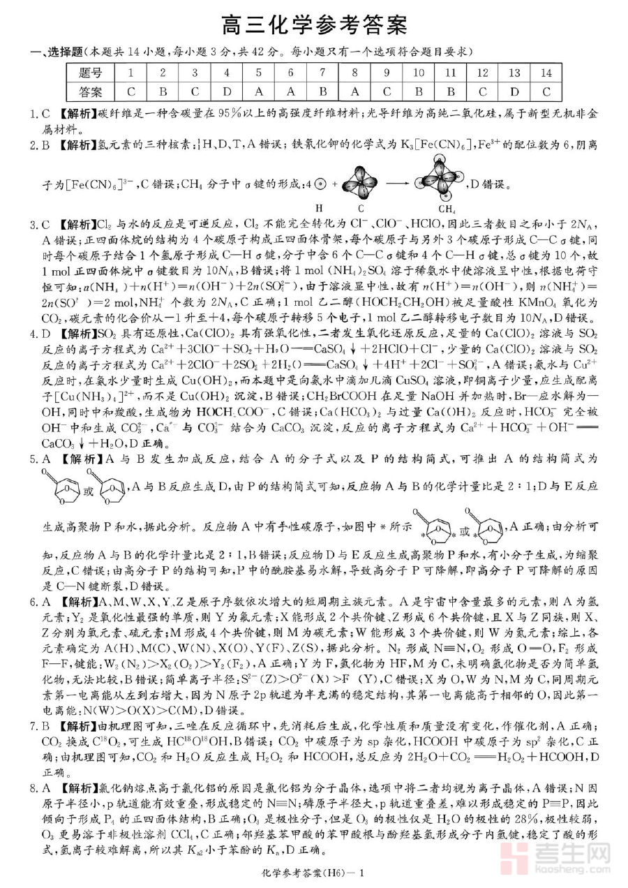 这份答案资料可用于学生自我核对考试作答结果,帮助学生快速发现自身在化学知识掌握方面的薄弱环节,为后续针对性复习提供清晰方向;同时也能为教师提供客观的评分依据,辅助教师系统分析班级整体的学习情况,及时调整教学策略与复习计划,提升教学与备考的精准性和效率。此外,它还可作为学生梳理知识体系、巩固核心知识点的参考工具。