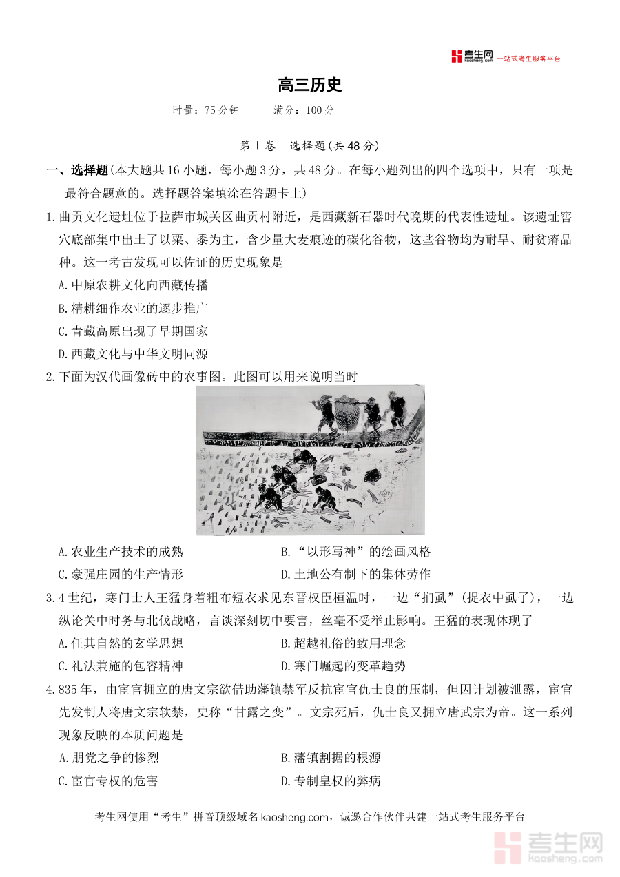 该资料可用于高三学生历史学科的阶段学情诊断,帮助学生自主检测学习成果,也为教师评估教学效果、调整教学计划提供数据支持;含答案的配置便于师生快速核对答题情况,分析知识薄弱点,为后续备考规划明确方向。