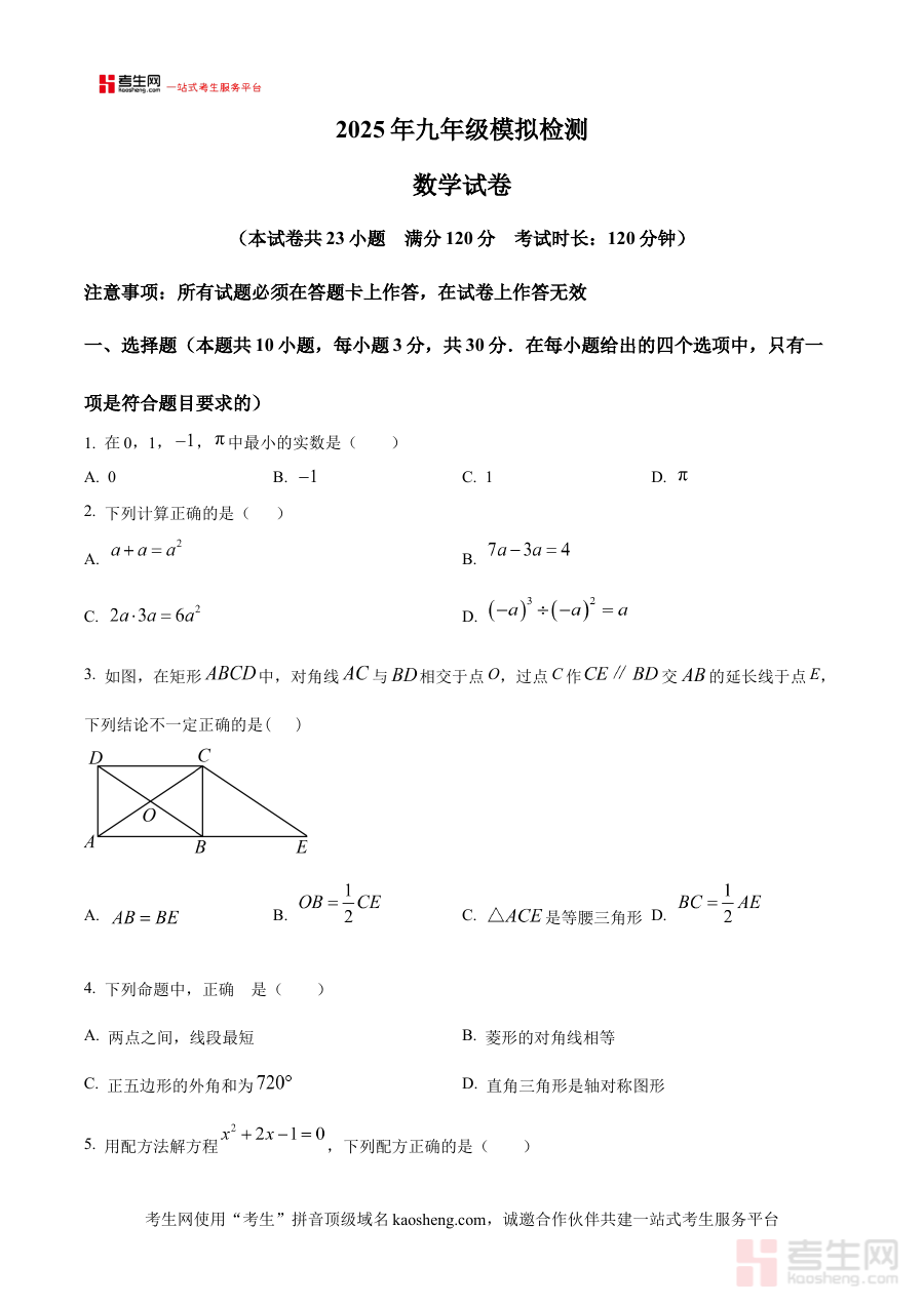 《精品解析:2025年辽宁省沈阳市第七中学协作体九年级中考零模数学试卷(原卷版)》是针对2025年辽宁省沈阳市中考备考阶段推出的阶段性检测资料,由沈阳市第七中学协作体联合编制,聚焦九年级学生中考前早期知识掌握情况。该资料严格贴合沈阳地区中考数学命题方向与协作体教学实际,为学生提供与真实零模考试场景高度一致的原卷内容,是九年级学生开展中考数学备考的重要参考资料之一。