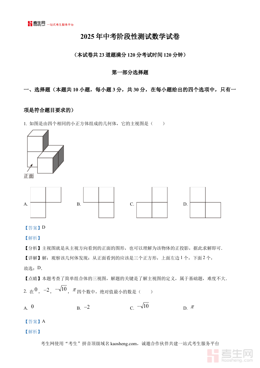 《精品解析:2025年辽宁省沈阳市铁西区九年级中考零模数学试卷(解析版)》是针对2025年辽宁省沈阳市铁西区九年级学生设计的中考零模数学考试配套解析资料。中考零模作为中考前重要的阶段性检测环节,能够帮助学生提前适应中考的考试节奏与命题特点,而该解析版资料通过专业的试题分析与详细解答,为考生和教学者提供了系统的参考依据,是铁西区九年级学生开展中考数学前期复习的关键辅助材料之一。