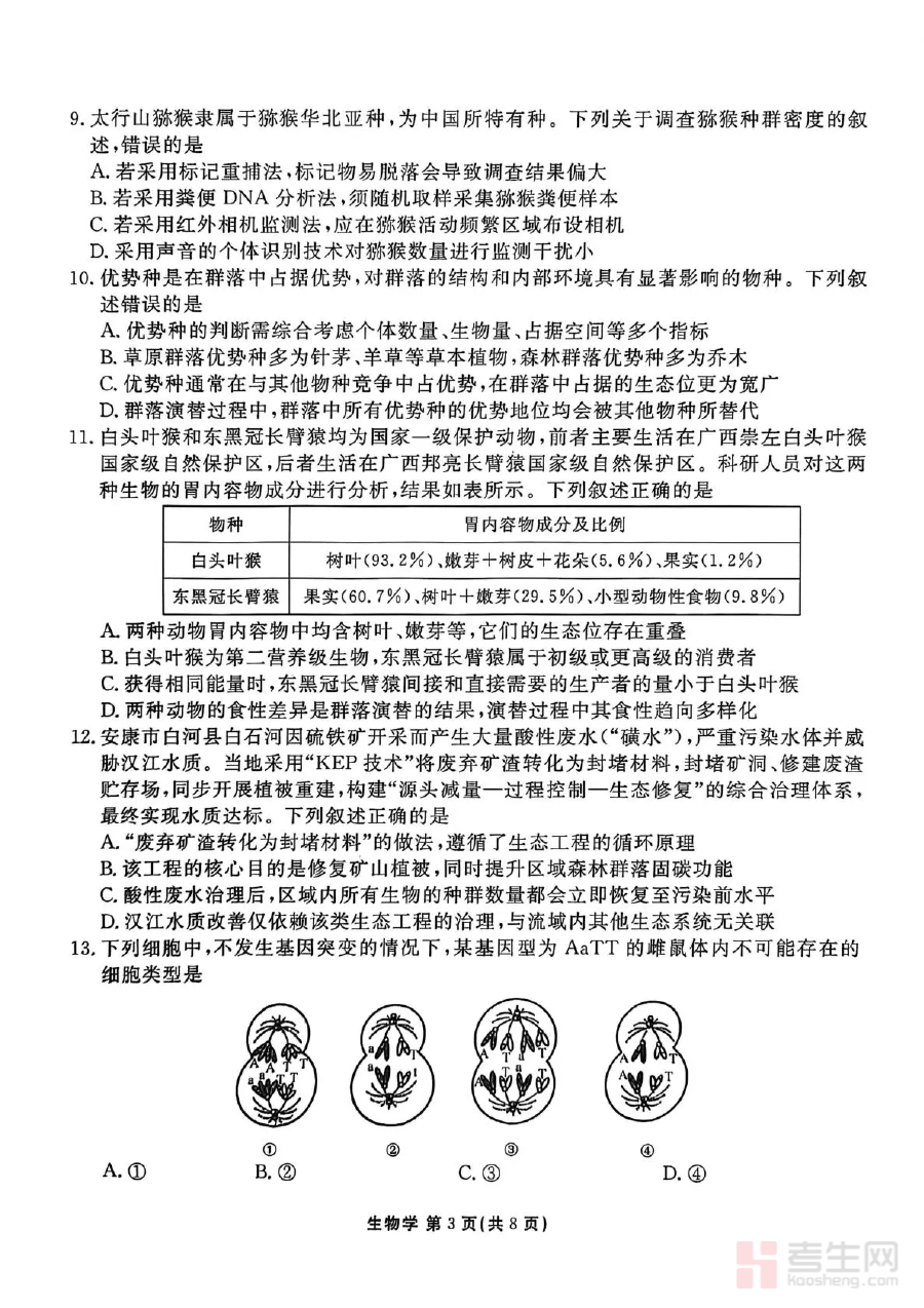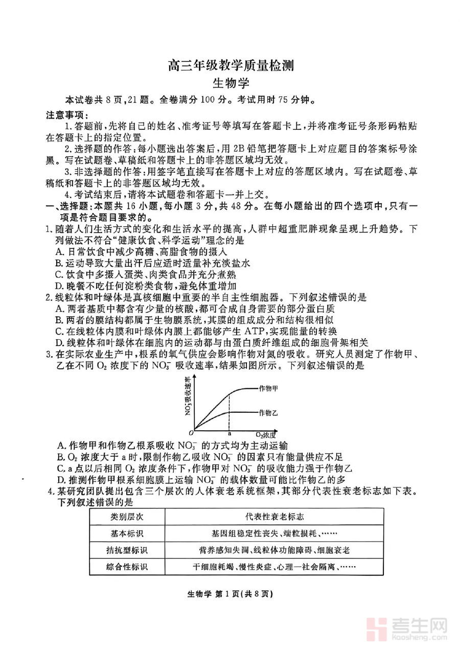 该资料的核心用途在于助力高三学生完成生物学科的阶段学情诊断与学习效果检测,通过标准化的联考练习能够清晰呈现学生在知识掌握、能力应用等方面的优势与不足,同时也为教师优化教学方案、制定个性化备考规划提供可靠依据,推动教学与备考工作更具针对性和实效性,避免盲目复习导致的效率低下。