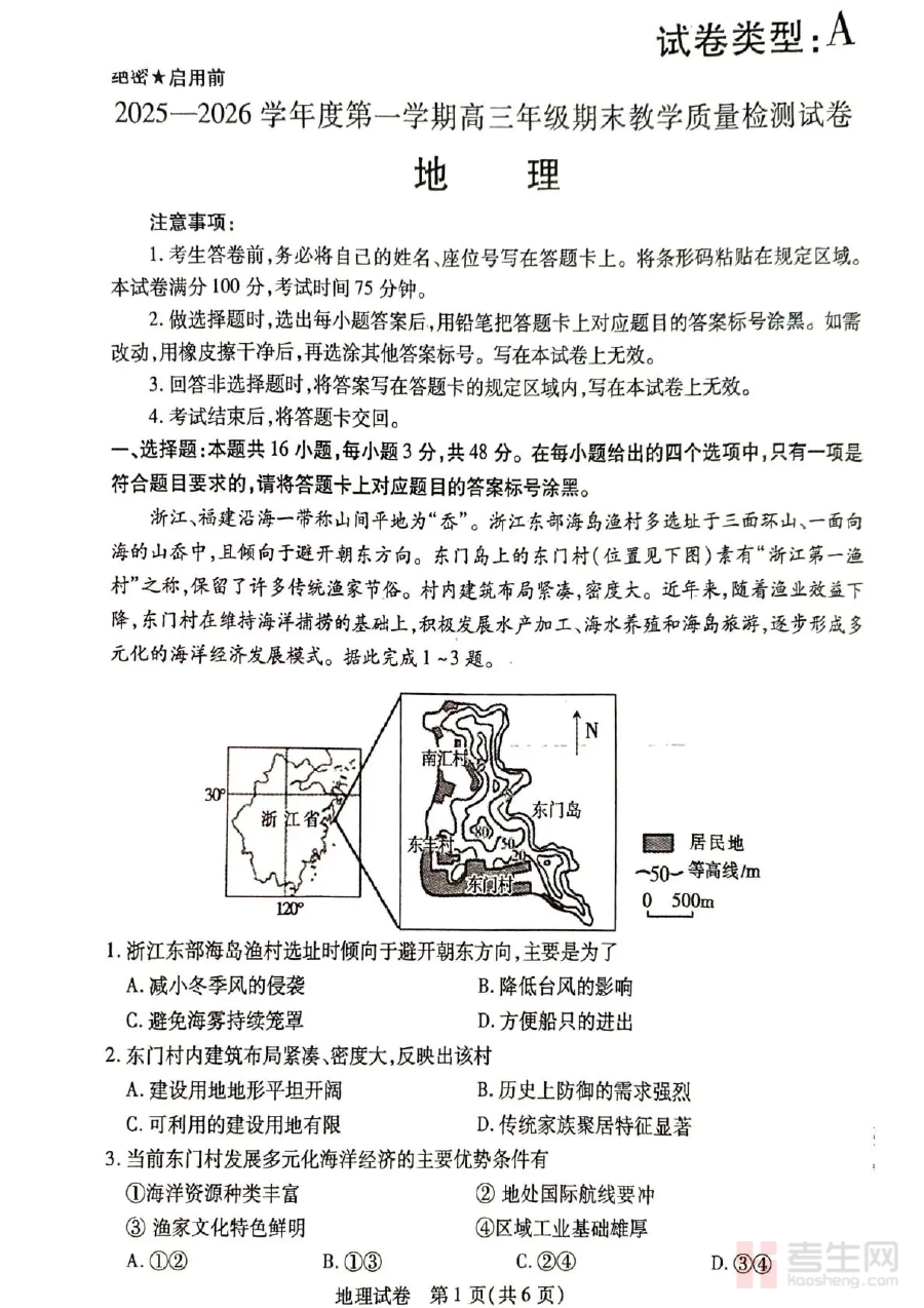 《2025—2026学年度第一学期高三年级期末教学质量检测地理》是针对2025至2026学年第一学期高三年级地理学科的期末教学质量检测相关备考资料,聚焦该学年第一学期末的地理学科教学质量评估需求,为师生提供与期末检测直接相关的参考依据。