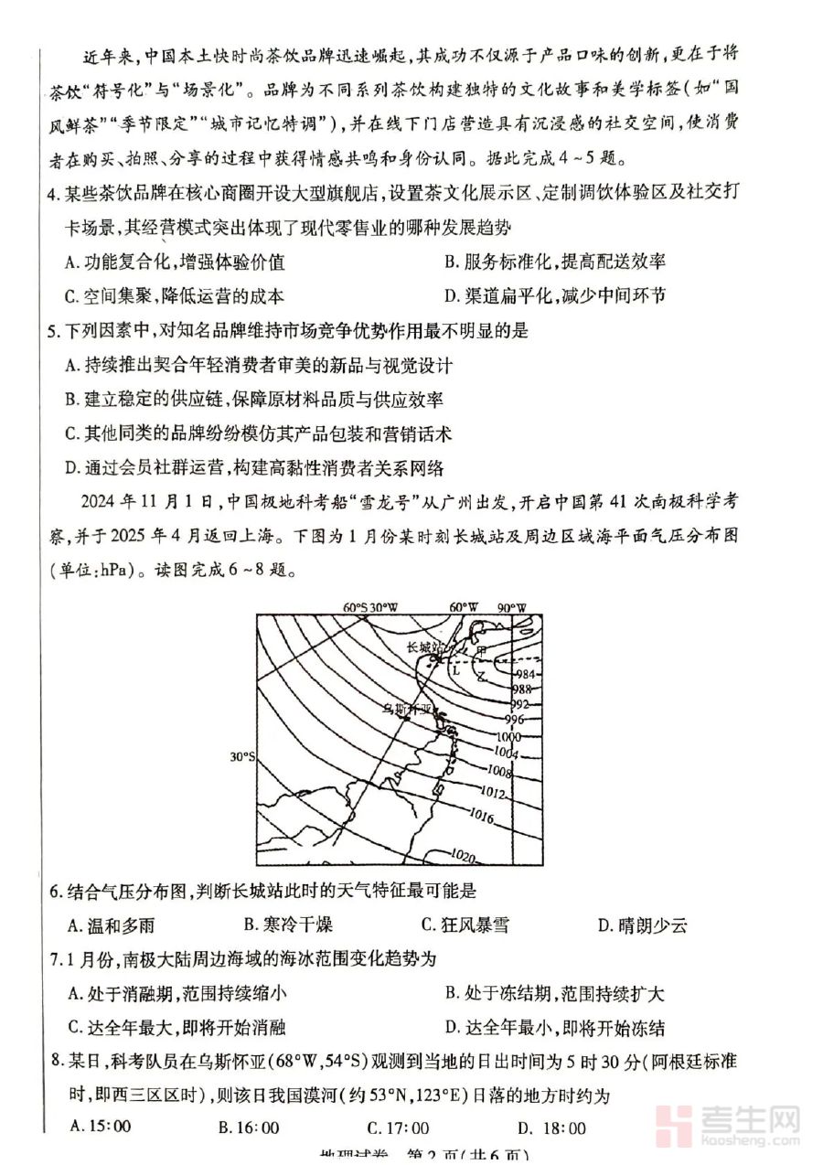 此资料适用于2025—2026学年度第一学期的高三学生及地理教师群体,作为阶段检测类资料,它能帮助学生检验自身学习成果,及时发现薄弱环节并调整学习策略;对教师而言,可用于评估教学效果,优化教学计划,助力高三地理教学与备考工作的高效推进。
