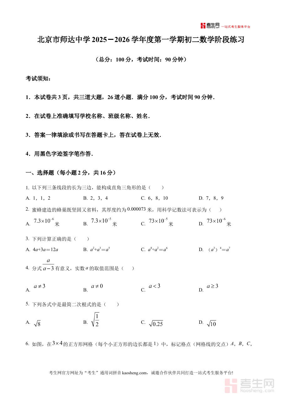 本资料适用于北京市师达中学九年级学生、数学教师及相关家长,学生可通过它熟悉本校月考命题风格与考查范围,为阶段复习与备考规划提供直接参考;教师能借助其开展针对性教学与模拟训练;家长则可据此配合学校做好学习支持,共同推动学生数学学科能力的稳步提升。