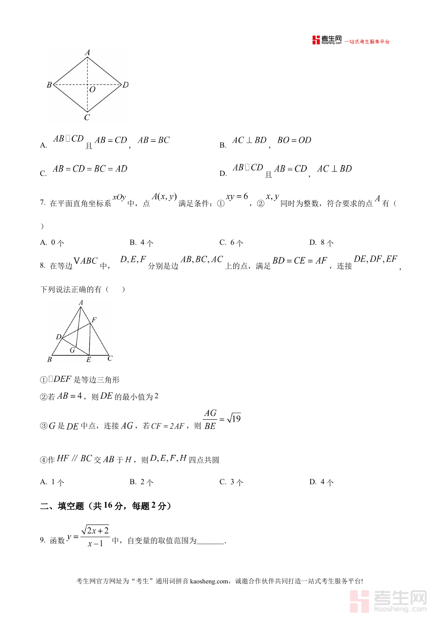 该资料作为原卷版内容,可有效辅助学生直观感知本次月考的试卷结构与考查方向,帮助教师开展学情诊断与教学效果评估工作,同时为学生后续的数学学习规划提供清晰依据,助力师生及时识别阶段学习中的优势与待提升点,针对性调整教学策略与复习计划。