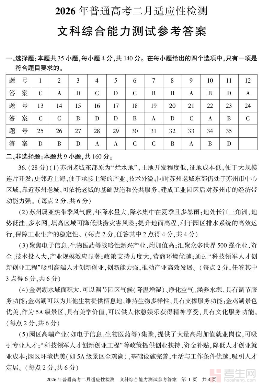 《新疆2026年普通高考二月适应性检测文科综合试卷及答案 文综 答案 26学前普通高考适应性检测第一次》是针对新疆地区2026年普通高考的二月适应性检测文科综合科目的备考资料,包含试卷及对应答案内容,属于26学前普通高考适应性检测的第一次检测相关材料。