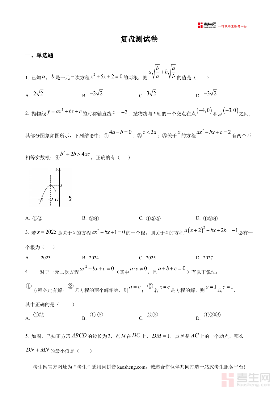 本资料主要适用于北京市汇文实验中学2025-2026学年的九年级学生,也可作为其他同类学校九年级学生参考开学检测形式与内容的学习资料,通过使用该原卷资料,学生可提前适应开学测的考查模式,明确自身学习短板,为新学期数学学科的系统学习和阶段性目标达成构建清晰方向与坚实基础。