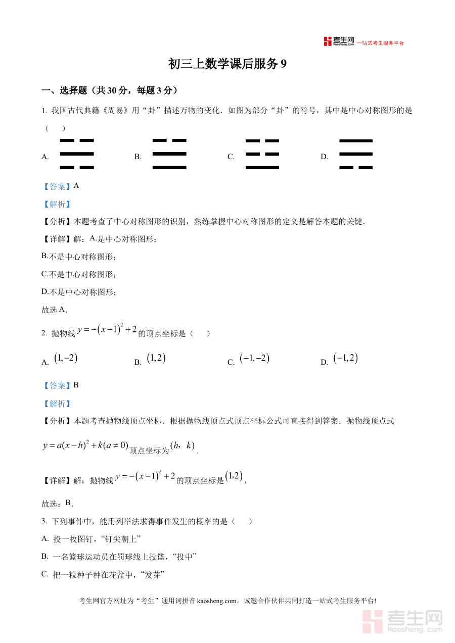 本资料适用于北京市海淀区中国人民大学附属中学2025-2026学年九年级上学期的学生,以及关注该阶段数学教学的教师,其解析内容能够辅助学生巩固阶段所学知识,同时为教师的教学评估与指导提供参考,具有较强的阶段检测与备考规划价值。