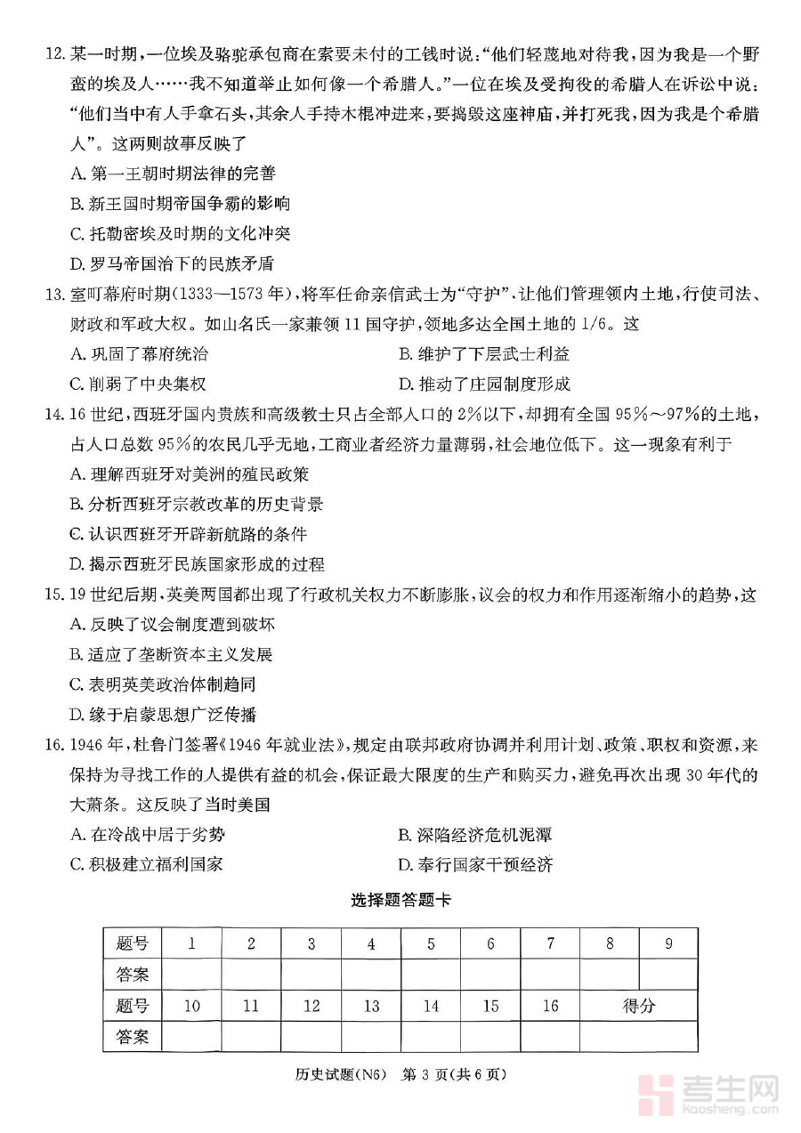 作为高三阶段的月考试卷,其核心用途在于助力学校与教师开展学情诊断工作,精准掌握学生在历史学科特定阶段的知识掌握情况、能力运用水平及学习薄弱环节;同时,为学生提供自我评估契机,让学生清晰认知自身学习状态,及时调整学习策略与重点。此外,该试卷可辅助教师优化后续教学计划与备考指导方案,使教学内容与方向更贴合学生实际需求,提升备考效率与针对性。