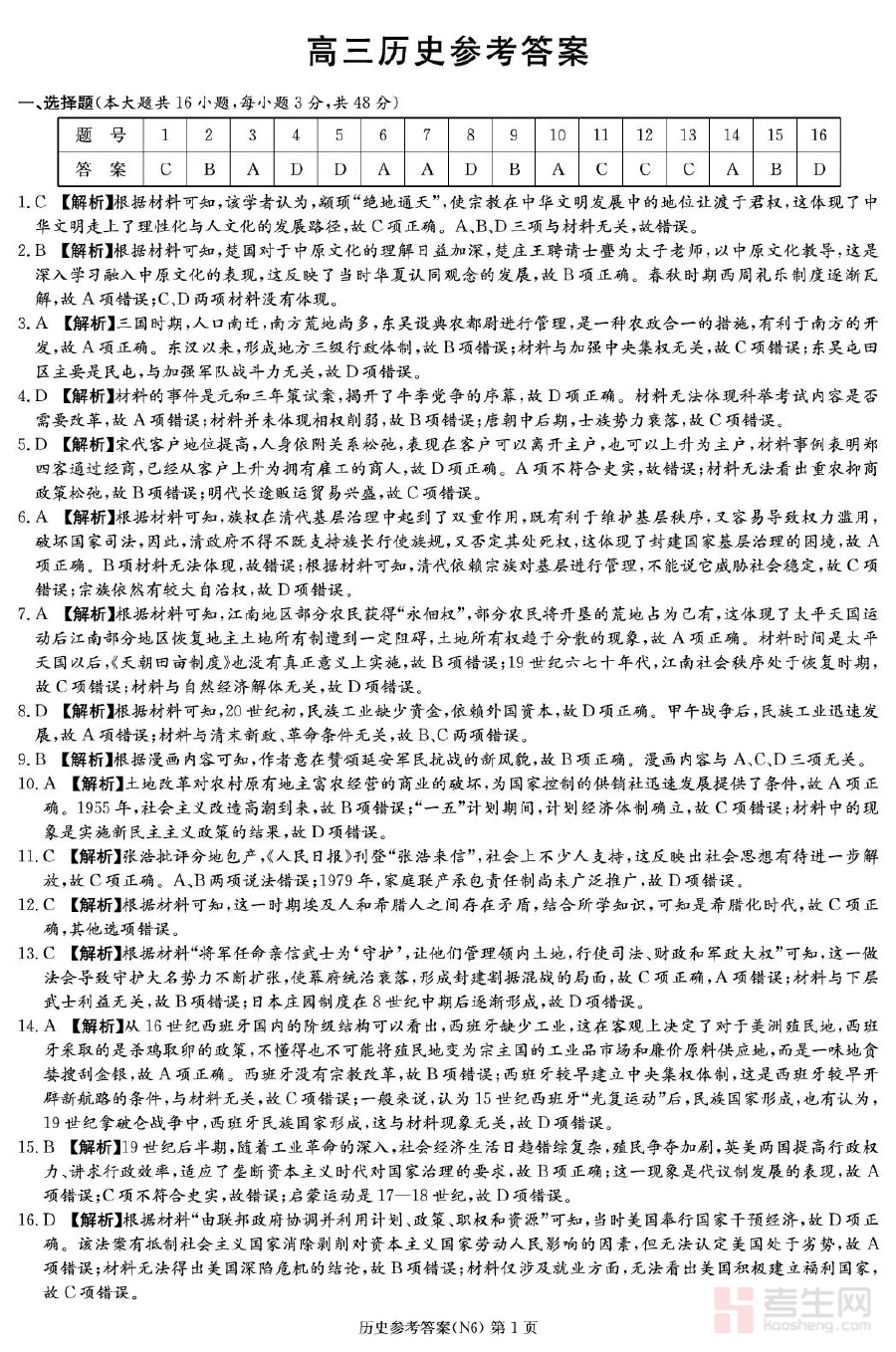 《长郡中学2026届高三月考试卷(六)历史答案》是湖南省长沙市知名重点高中长郡中学为2026届高三学生量身打造的第六次月度考试历史学科配套参考答案。作为高三学年关键备考阶段的重要辅助资料,它与该届学生的第六次月考历史试卷形成完整配套体系,能够为师生提供该次考试的标准化、权威性答题参考依据,是高三历史学科阶段性教学与学习反馈过程中不可或缺的工具之一。