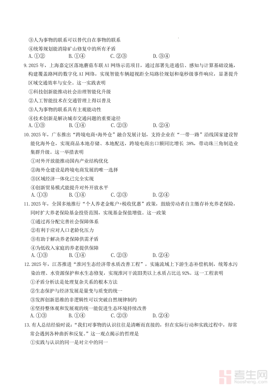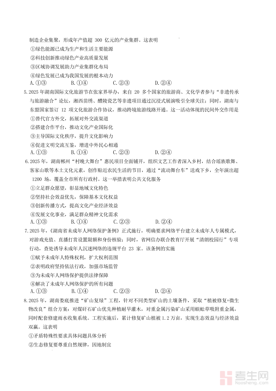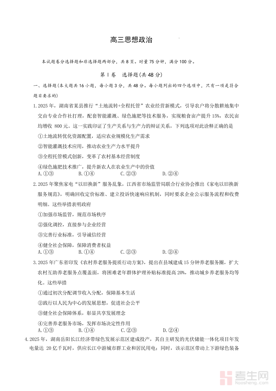 该资料适用于2026届高三政治学科的师生群体,尤其对处于复习强化阶段的学生具有重要参考价值。对于学生而言,它不仅是一次模拟月度考试的实践机会,更是检验阶段性复习效果、调整备考策略的关键工具;对于教师而言,这份试卷及答案可作为阶段性教学评估的参考依据,辅助优化教学安排。此外,关注长郡中学备考模式的其他学校师生或备考相关人员,也可将其作为了解同类学校复习进度与检测方向的参考资料,为自身备考提供借鉴。