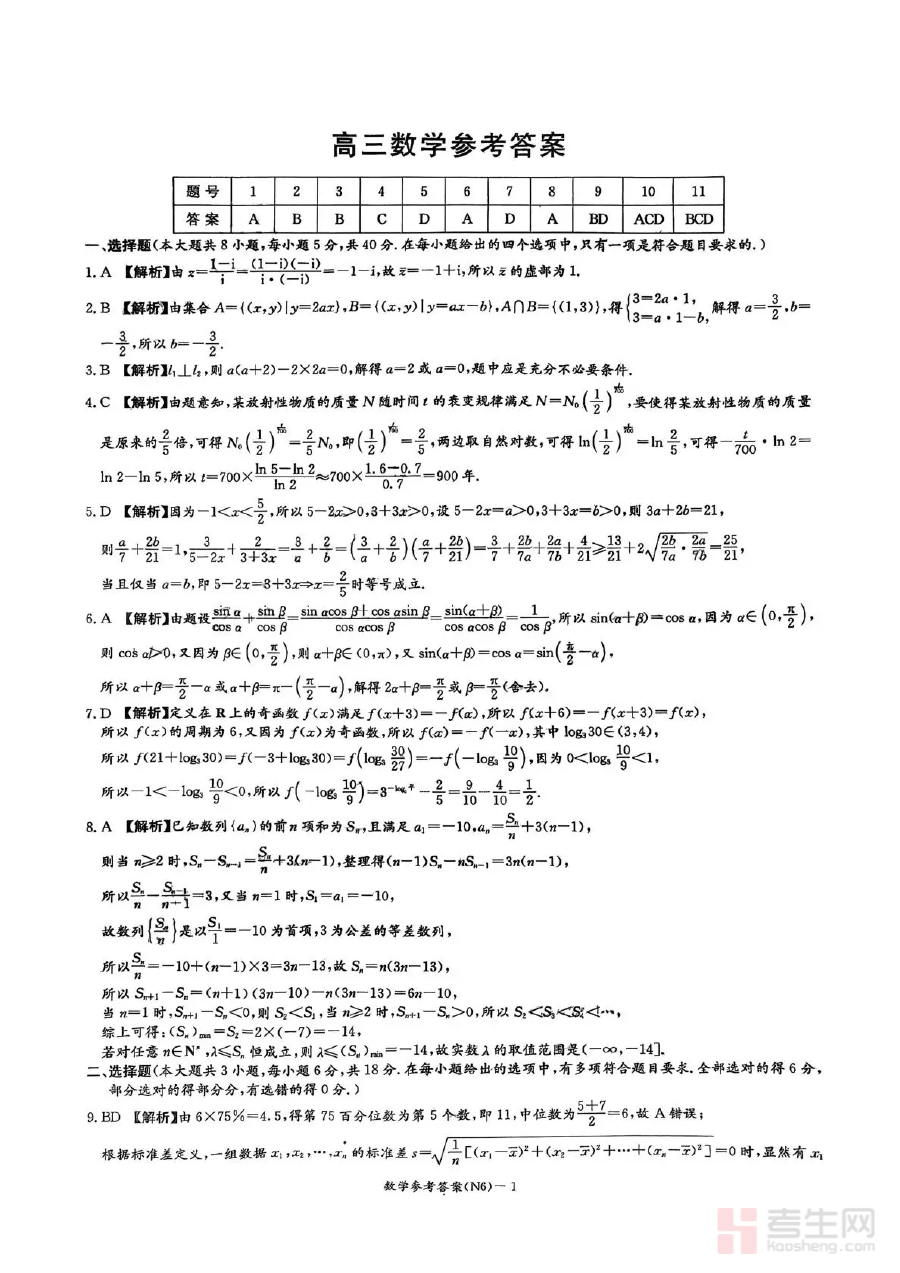 《长郡中学2026届高三月考试卷(六)数学答案》是长郡中学针对本校2026届高三学生推出的数学学科第六次月考试卷的配套参考答案,属于高三数学学科阶段性备考的核心辅助资料之一。该资料与长郡中学组织的高三第六次月考紧密关联,直接对应本次月考的数学试卷内容,为师生提供了该次考试的标准解答依据。作为高三阶段重要的阶段性考试配套资料,它承载着辅助教学评估与学生自我提升的双重功能。