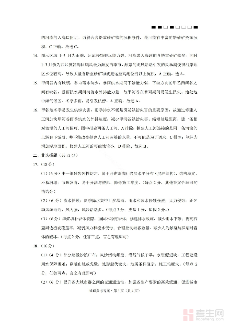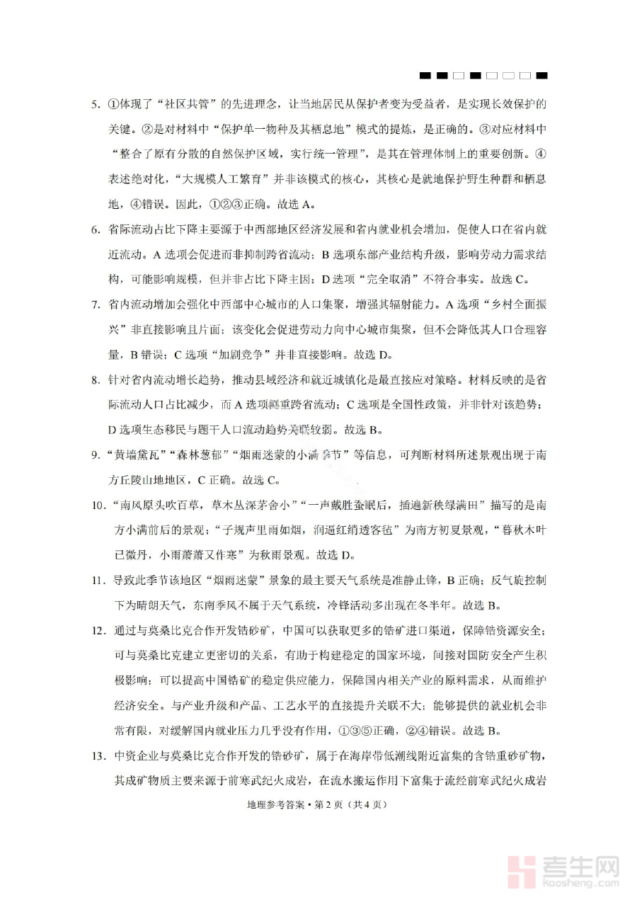 该资料的核心用途在于帮助考生完成试卷作答后进行自我核对与评估,明确自身在地理学科知识掌握、答题逻辑构建等方面的优势与不足;同时也为教师提供了标准化的评分参考,便于教师对班级整体学情进行系统诊断,及时调整教学策略和备考计划,确保备考方向与高考要求高度契合。