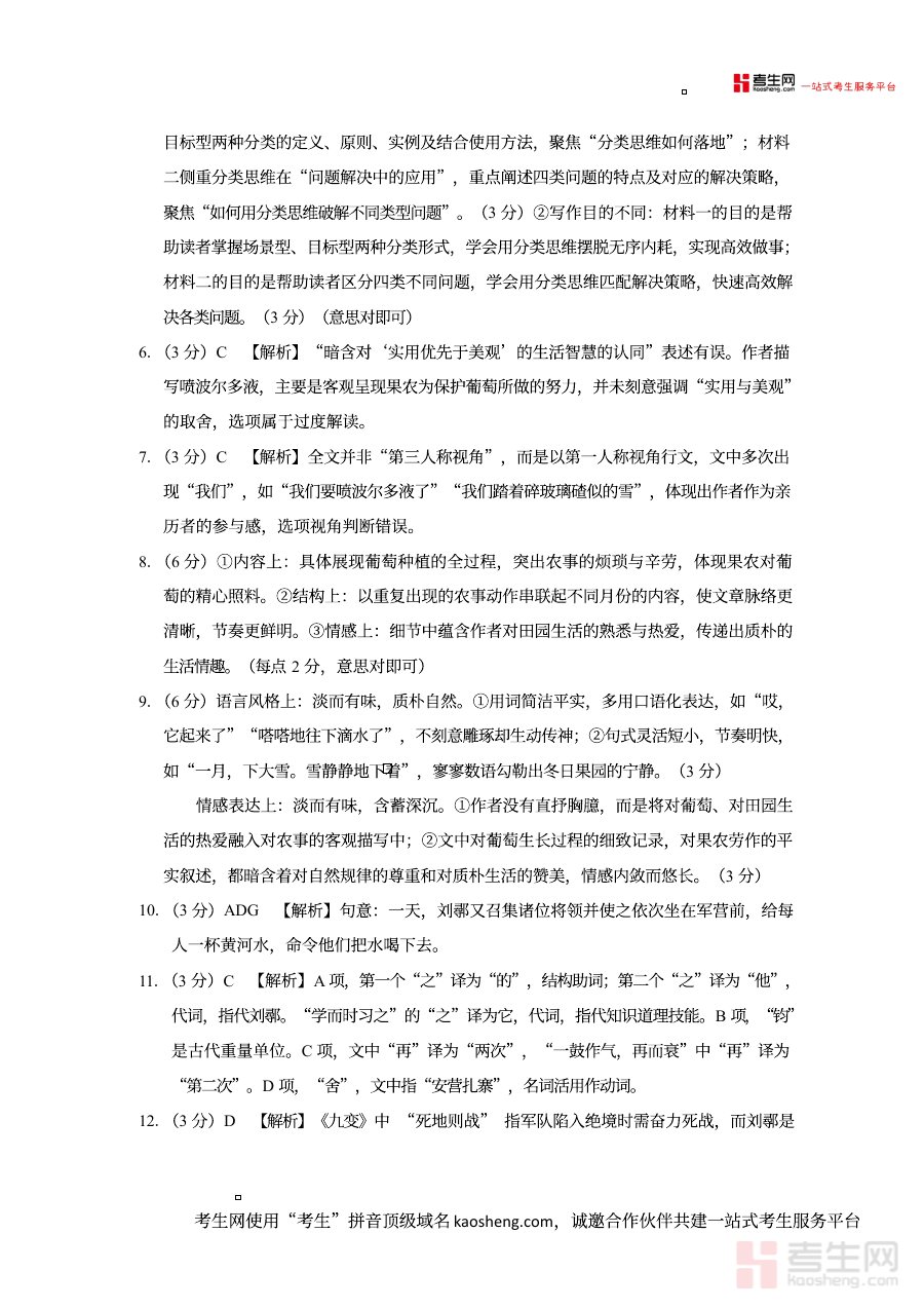 《2026届云南三校高考备考实用性联考卷(六)语文-答案》是2026届云南三所学校联合开展高考备考实用性联考第六次考试的语文科目配套答案资料,属于高三阶段高考备考的重要辅助资源。其与对应的联考测试卷协同,为考生提供阶段性备考的反馈支持,服务于高三学生的备考进度推进需求。