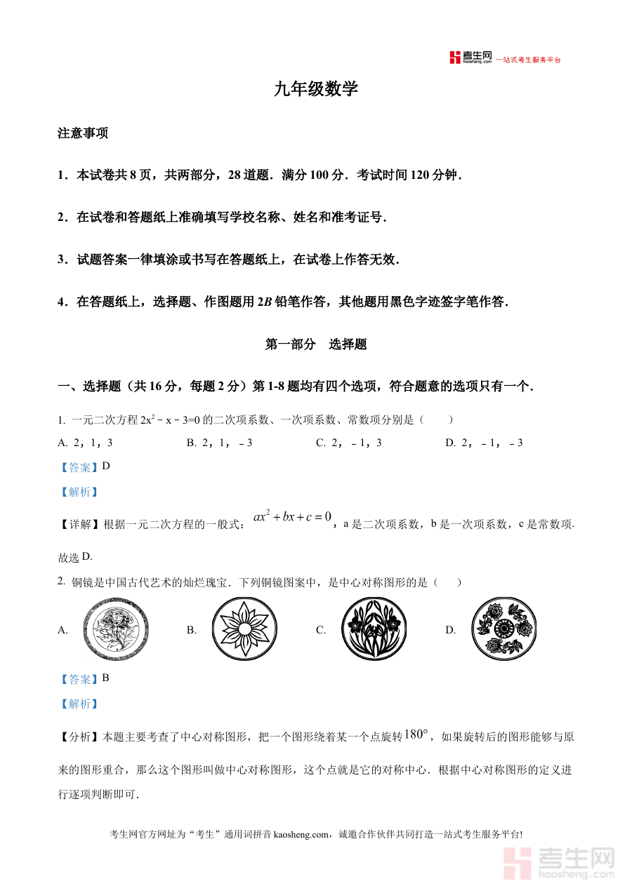 《精品解析:北京市海淀区2025-2026学年九年级上学期期中数学试题(解析版)》是针对北京市海淀区2025至2026学年九年级上学期期中数学考试的专业备考资料,精准匹配该地区该阶段数学学科的期中检测需求,为考生提供贴合本地教学进度与考试方向的参考依据。