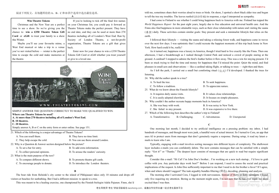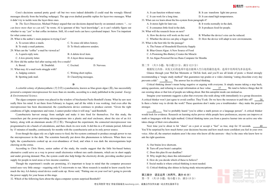《襄阳四中2026届高三下学期质量检测 英语+答案》是湖北省襄阳市第四中学为2026届高三学生设计的英语学科阶段性检测资料,包含检测试题与对应答案两部分。作为高三下学期关键备考阶段的评估材料,该资料紧密对接高三学生的学习进度与升学备考需求,为师生提供了标准化的阶段性学习成果检验工具。