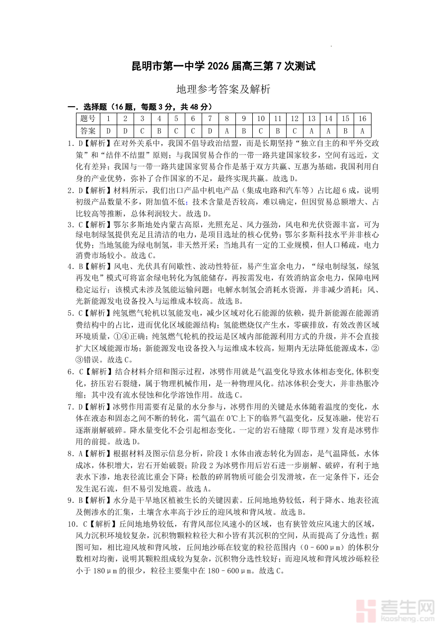 《昆明市第一中学2026届高三2月复习诊断 地理答案》是针对2026届昆明市高三学生在2月份开展的复习诊断考试配套的地理学科答案资料。该考试由昆明市第一中学组织实施,属于高三阶段区域性复习诊断类测试,旨在通过阶段性评估掌握学生地理学科的复习进展与知识掌握状态。作为考试配套答案,它为该诊断考试提供了权威的评分参考标准,帮助师生清晰把握考试的答题规范与评分依据。
