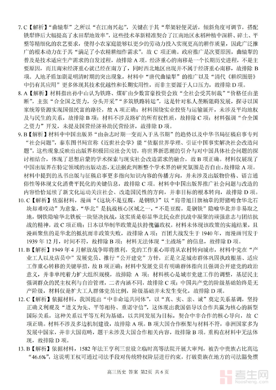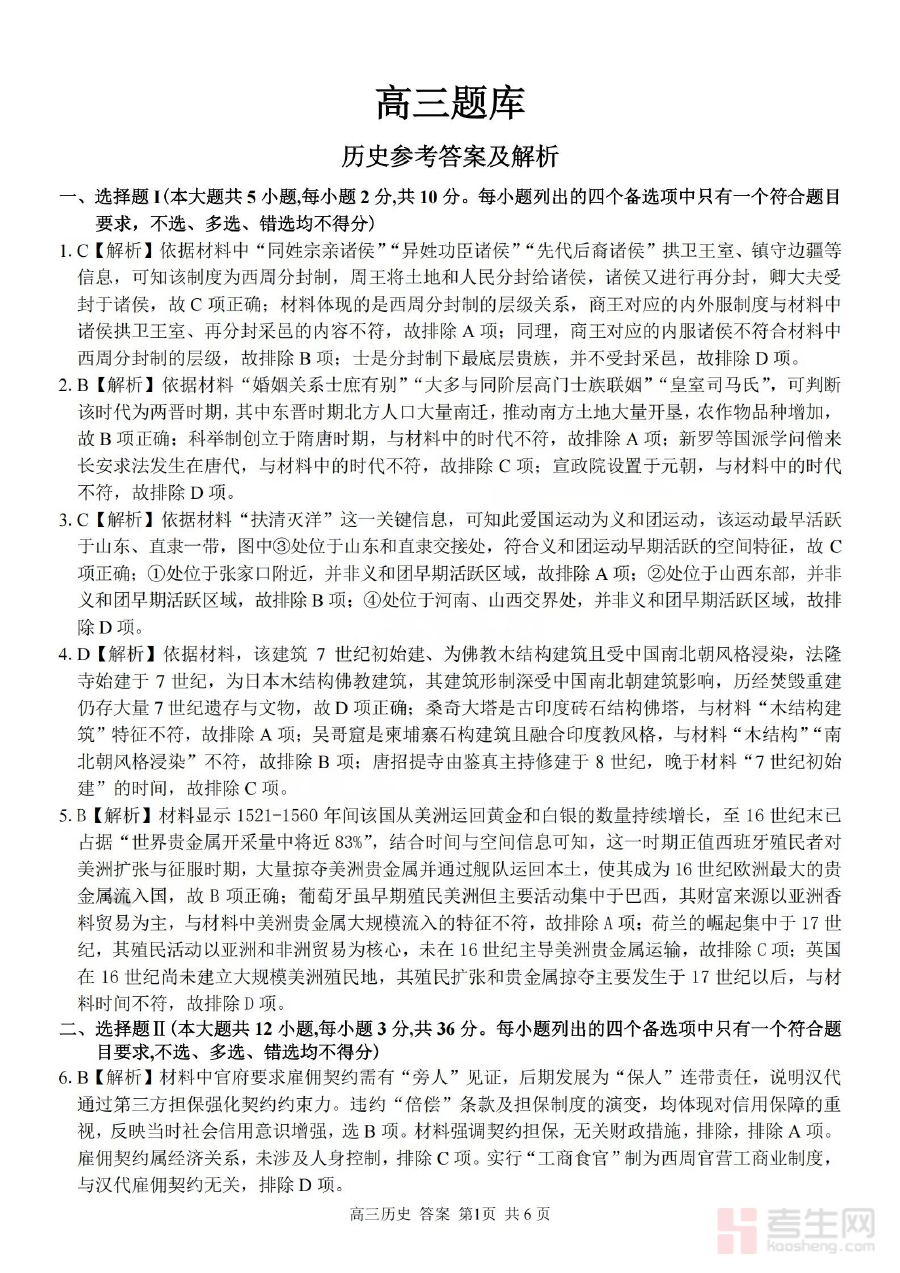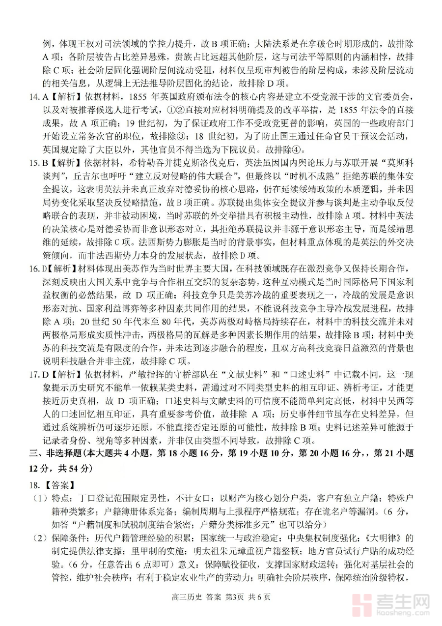 该资料的核心用途在于支持使用者对历史考试答题结果进行核对与分析。通过比对答案,使用者可清晰识别自身在历史知识掌握、答题逻辑构建及规范表达上的不足,为学情诊断提供直接且可靠的依据,同时也为后续的备考规划和学习策略调整提供明确指引,助力提升备考的针对性和有效性。