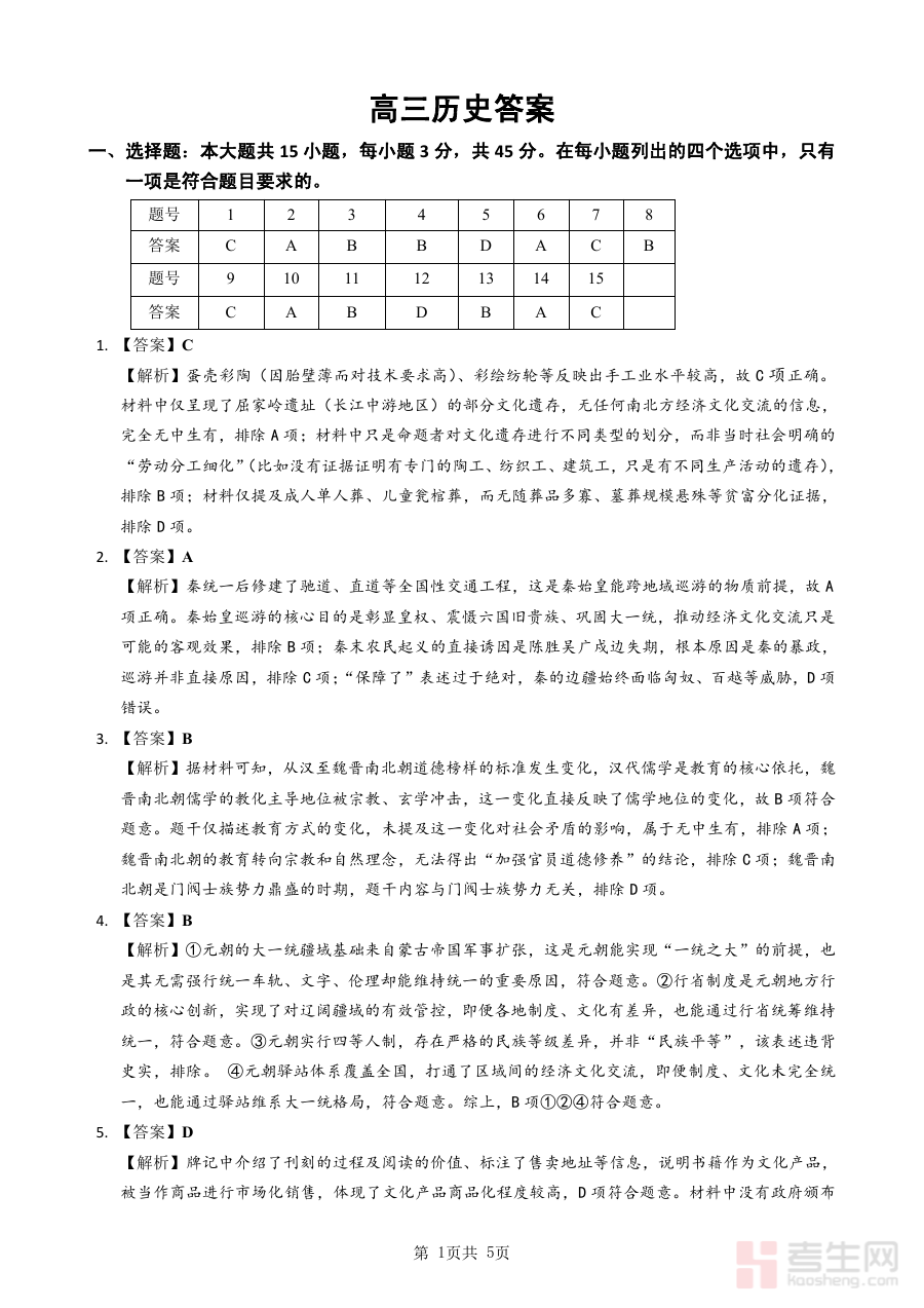该历史答案资料的核心用途在于帮助教学主体完成对高三学生开学初期历史学科学习情况的精准诊断,通过比对答案与学生实际作答的差异,教学人员可清晰把握学生在历史知识掌握、解题思路运用等方面的优势与不足;同时,该资料也为学生自身提供了自我评估的工具,助力其明确后续备考方向,优化个人学习规划;此外,对于学校和教师团队而言,该答案还可作为分析阶段性教学效果、调整教学策略的重要参考依据,确保教学活动更具针对性和有效性。